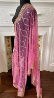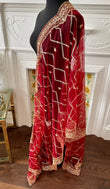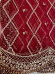 Net Duppattas thick border scalloped on two length side edges and ends finished with the slim version of the same border. Golden beads on all four sides.
