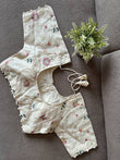 Off White Khadi Cotton Embroidery Ready Made Designer Saree Blouse