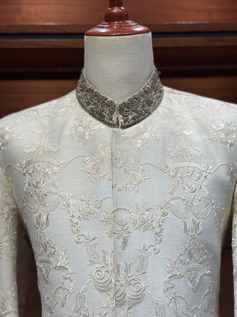 Off White Silk Sherwani for Men