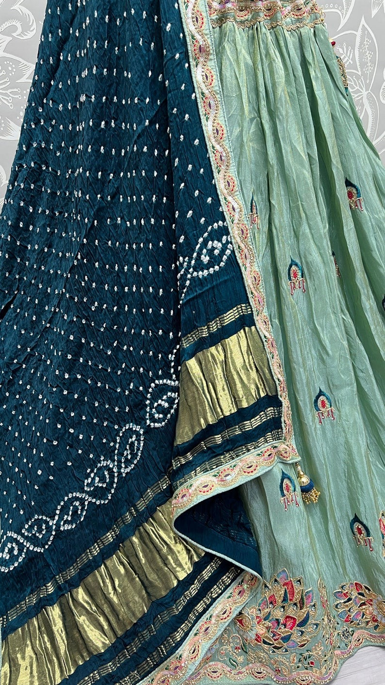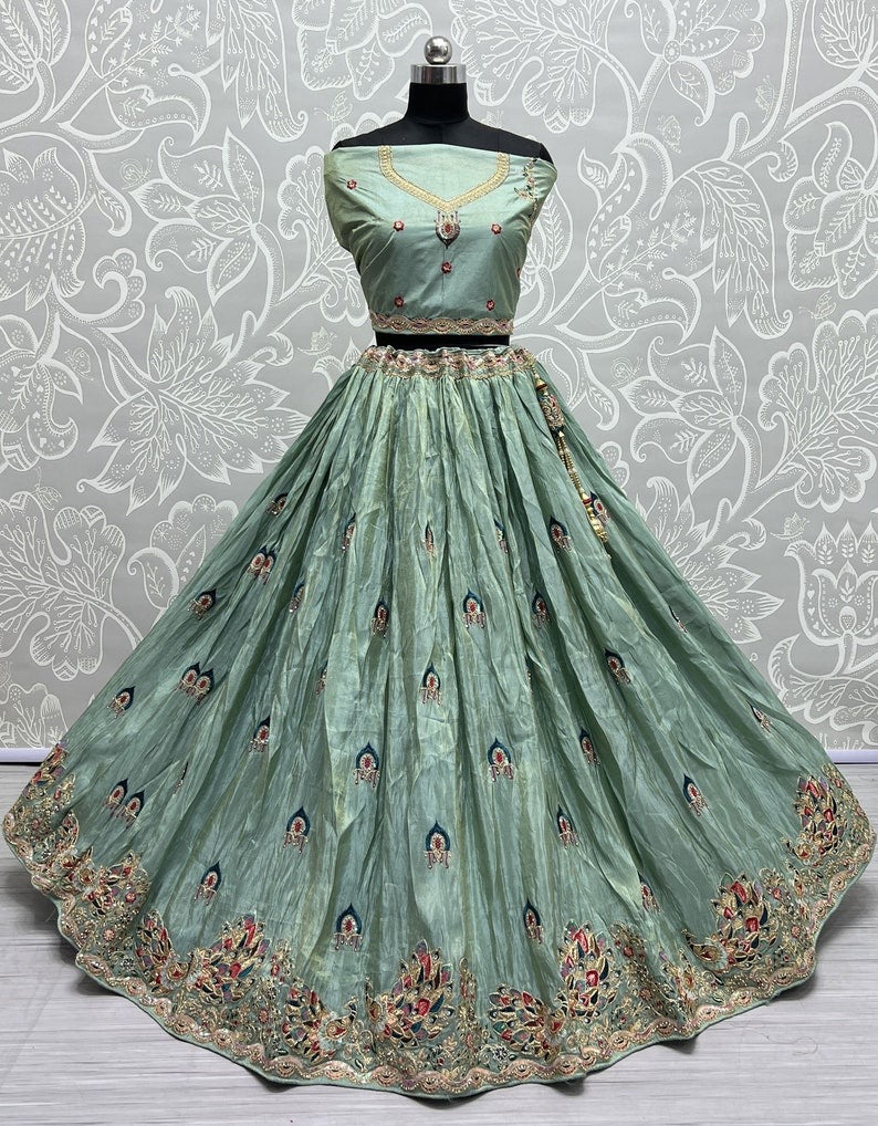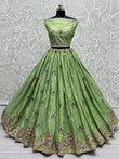 Parrot Colour Net Embroidered Lehenga Choli for Wedding