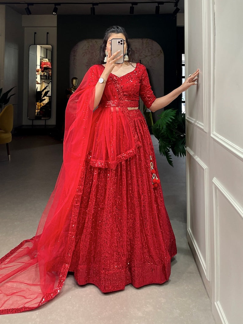 Package Contain : Lehenga, Blouse, Dupatta, Drawstring, Tassels, Belt