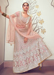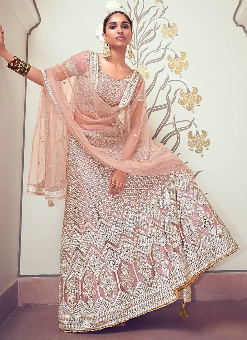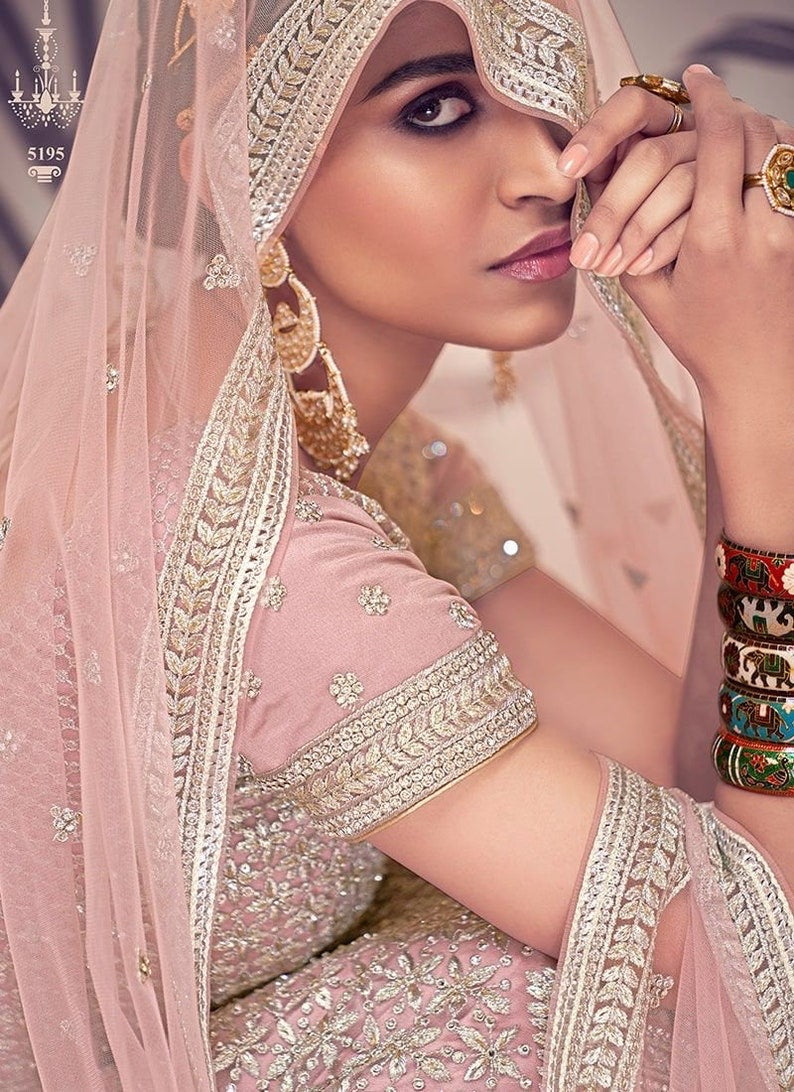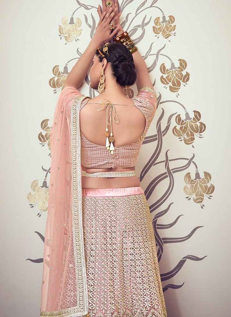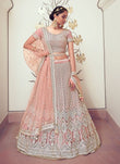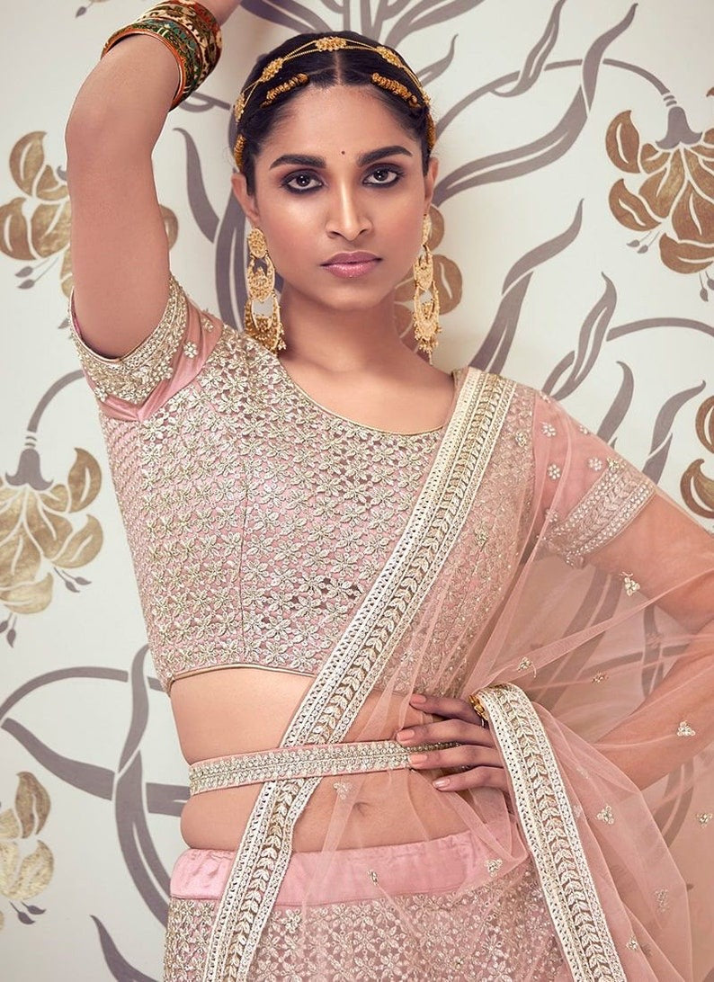 Pastel Pink Net Embroidered Wedding Wear Lehenga