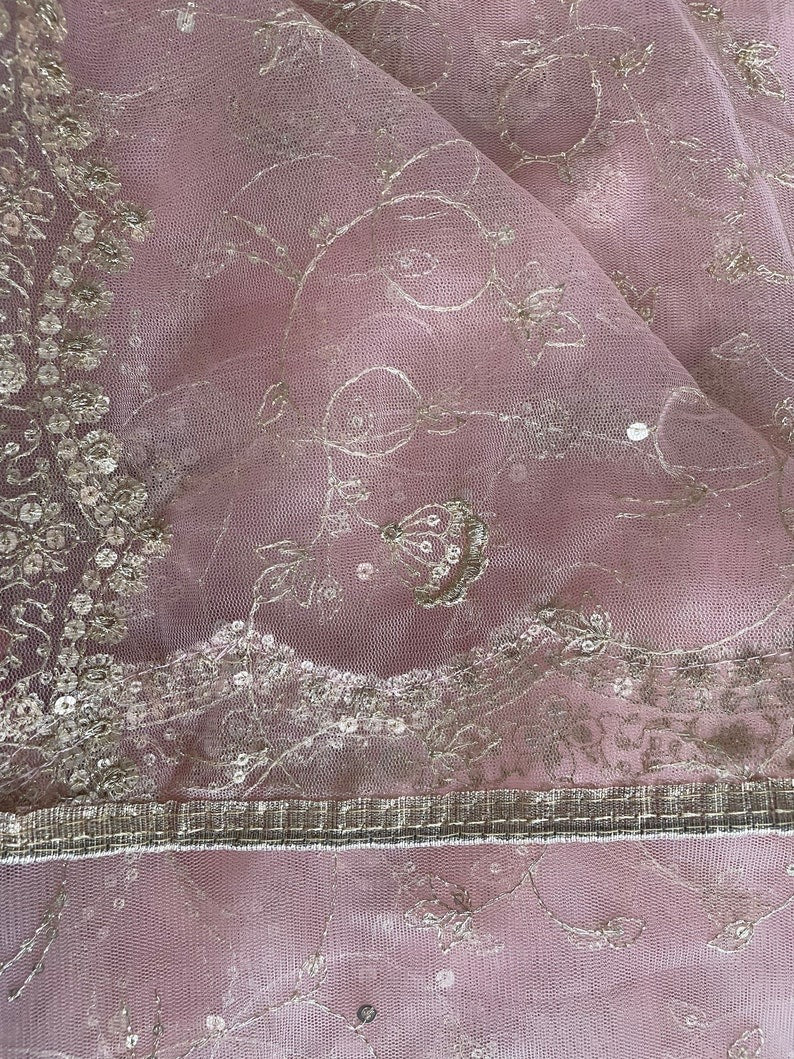 Net Fabric, piping on all four sides. Sequins and Metallic thread embroidery