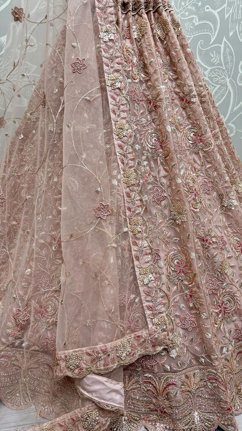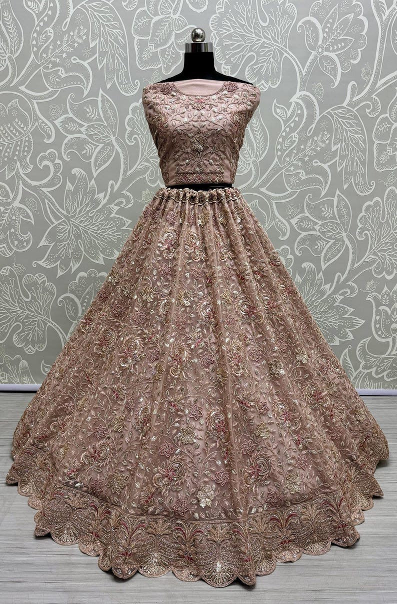 Pink Net Embroidered Lehenga Choli for Wedding