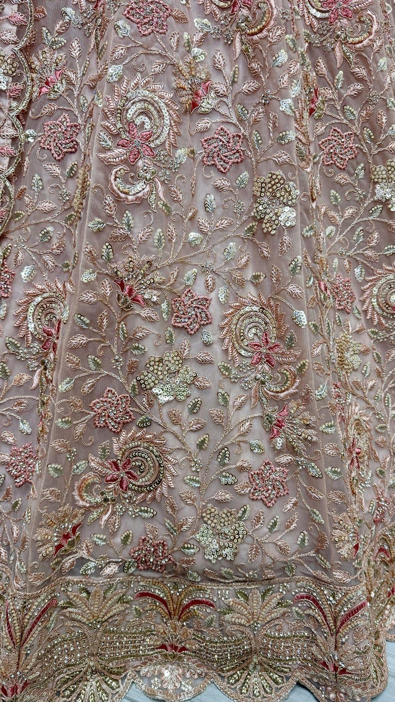 WORK : HEAVY EMBROIDERY 5 MM SEQUENCE WORK WITH EMBROIDERY SLEEVE
