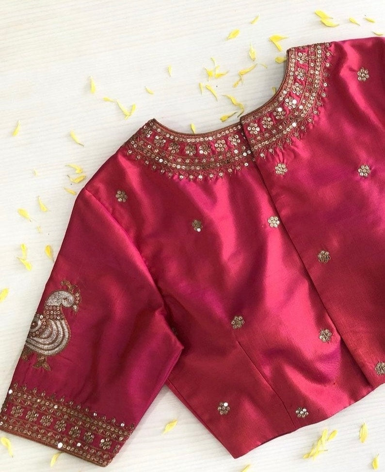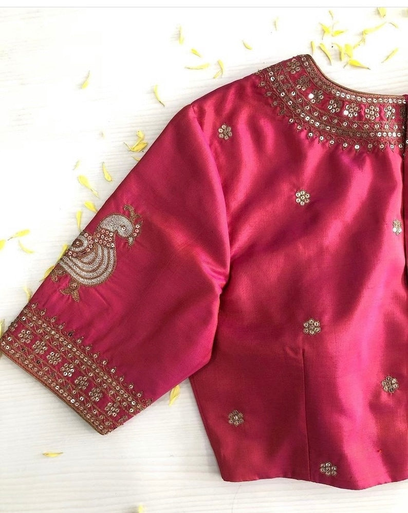 Pink Ready Made Embroidery Blouse