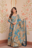 *Fabrics & Work* :- Russian Silk Rich ย Digital Print With Embroidered Sequins Work