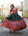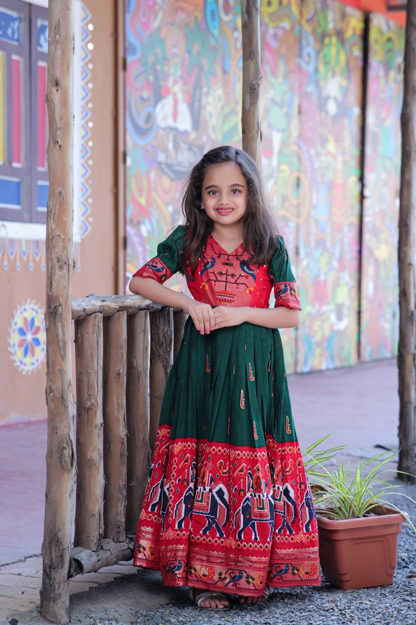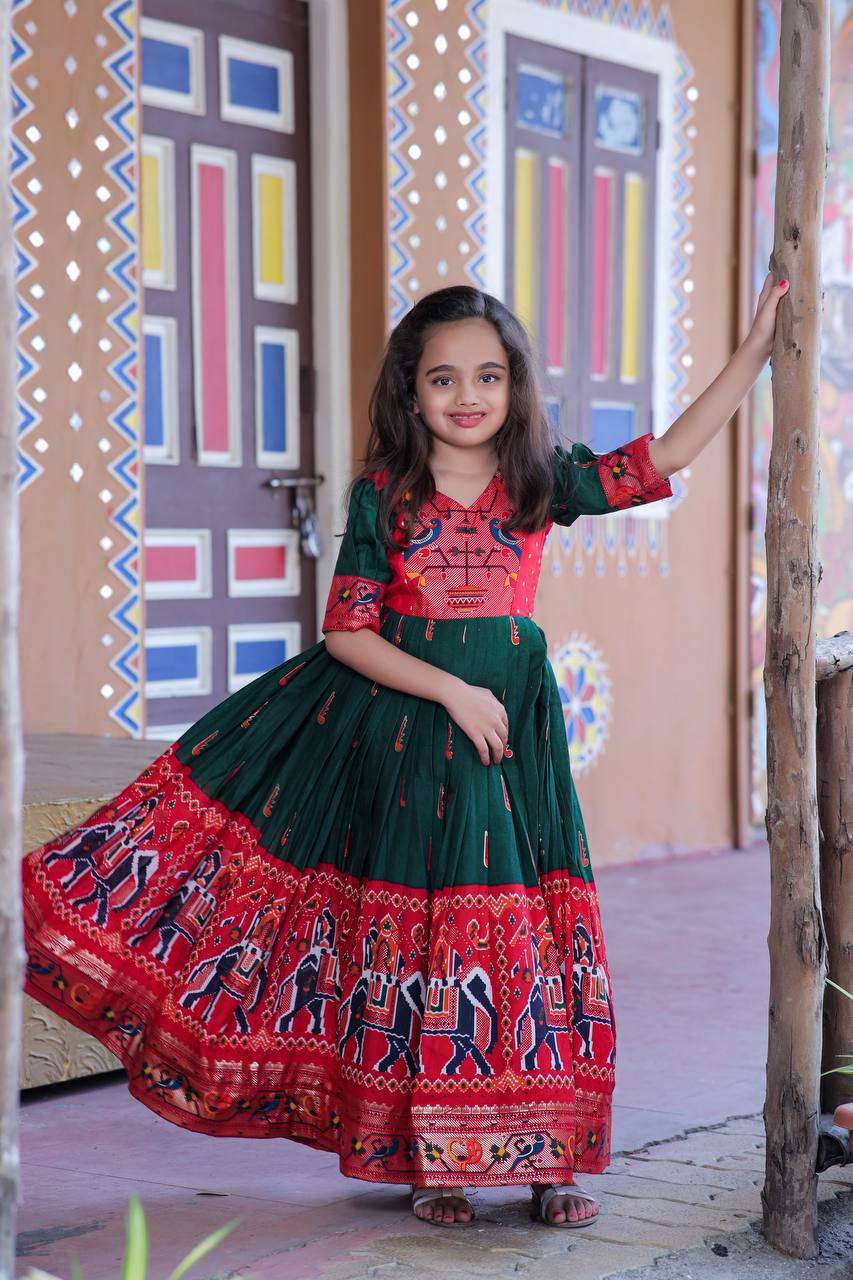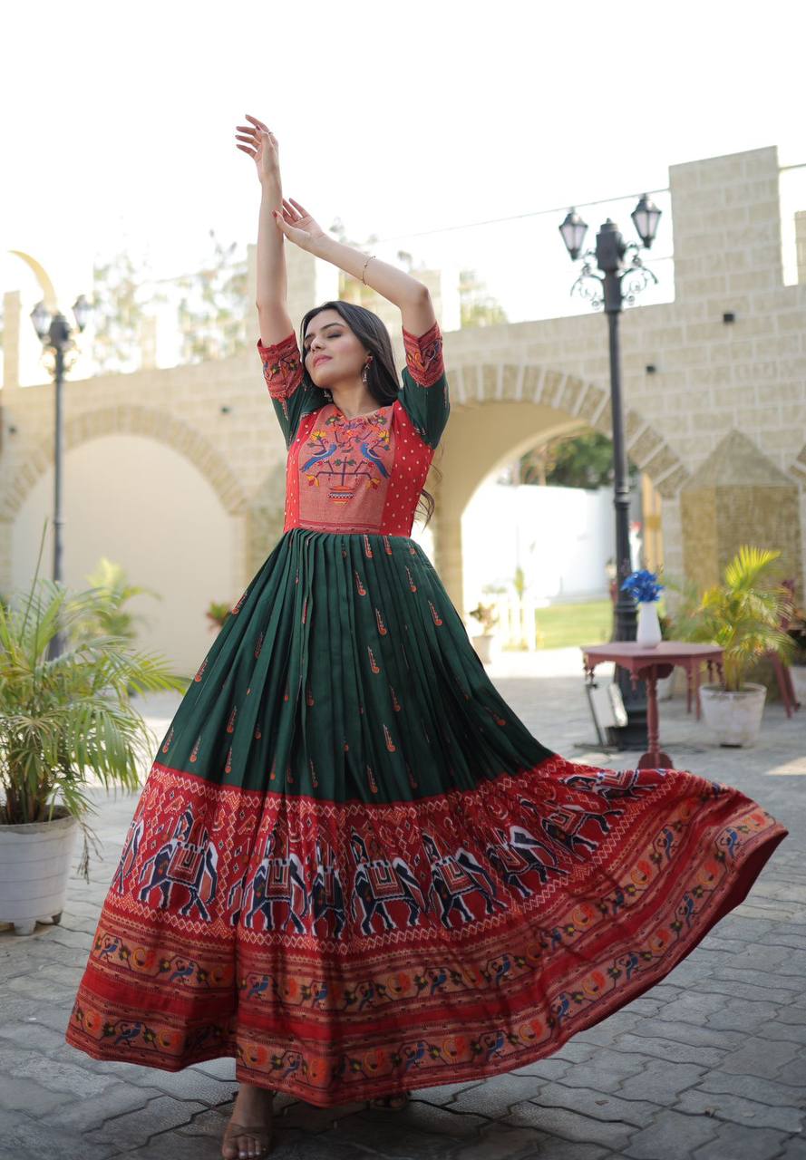 ๐*Be the center of attention with this Dola silk designer gown. The Patola Foil print work appears chic and great for any occasions.*๐ฅฐ