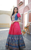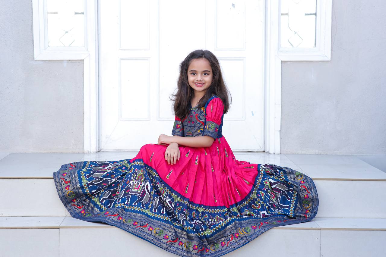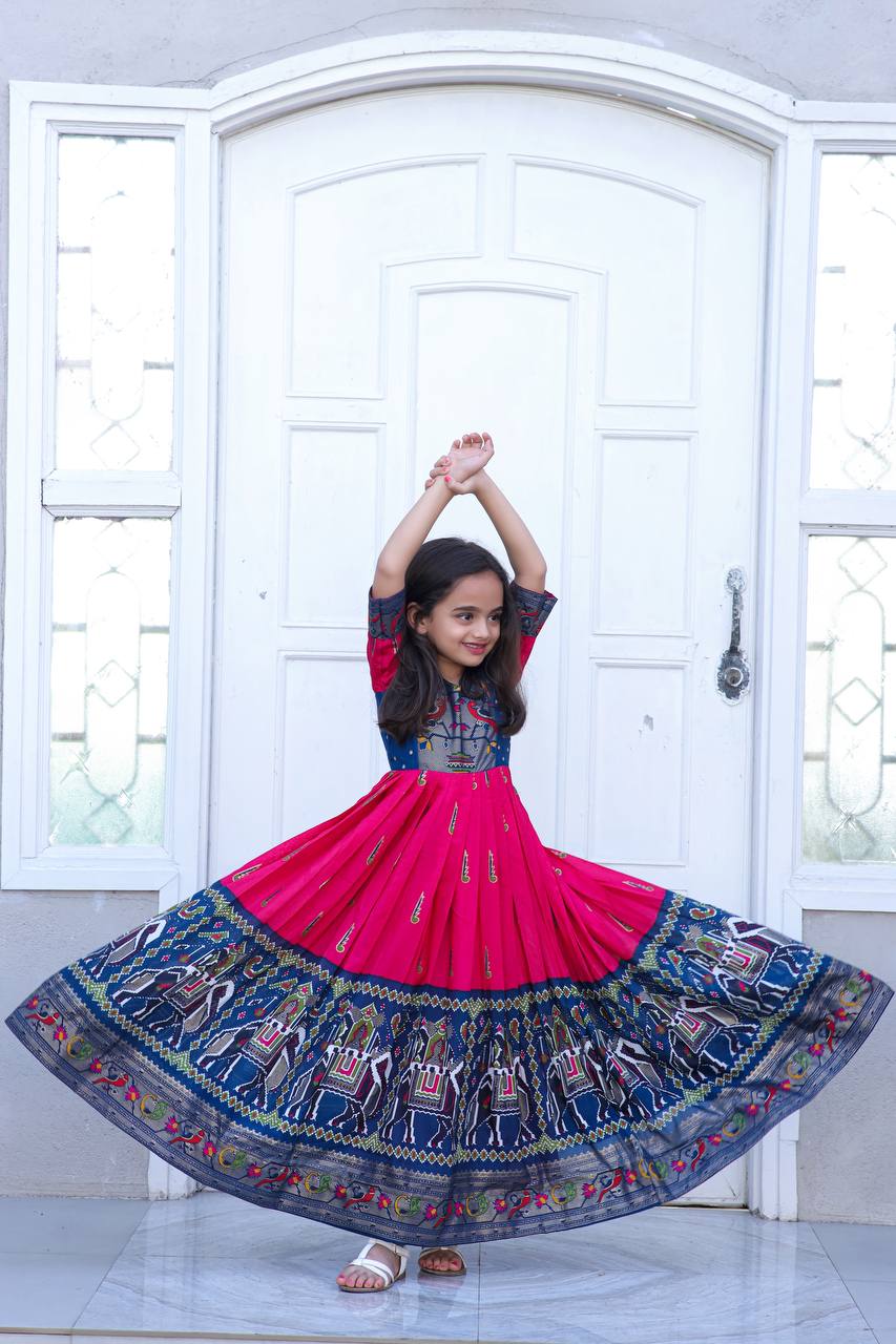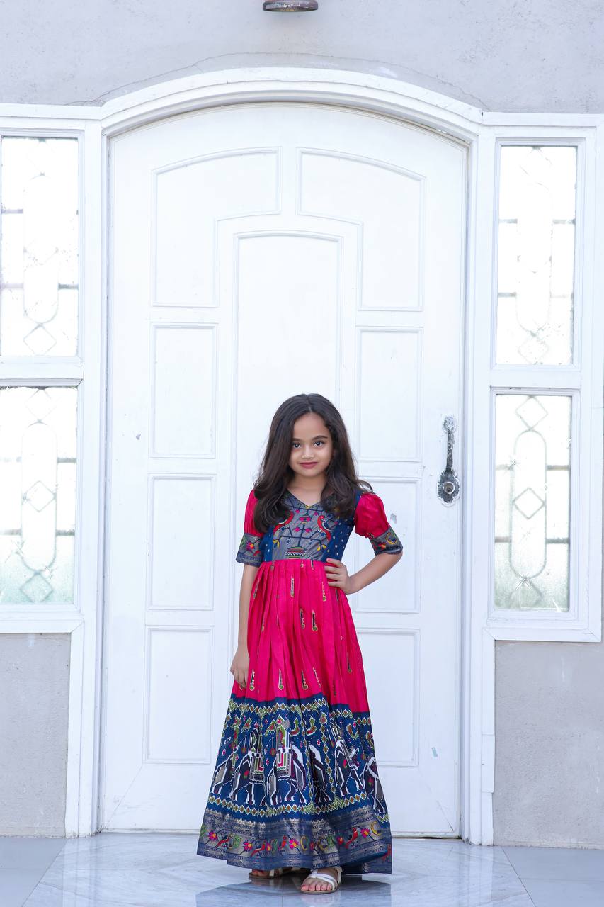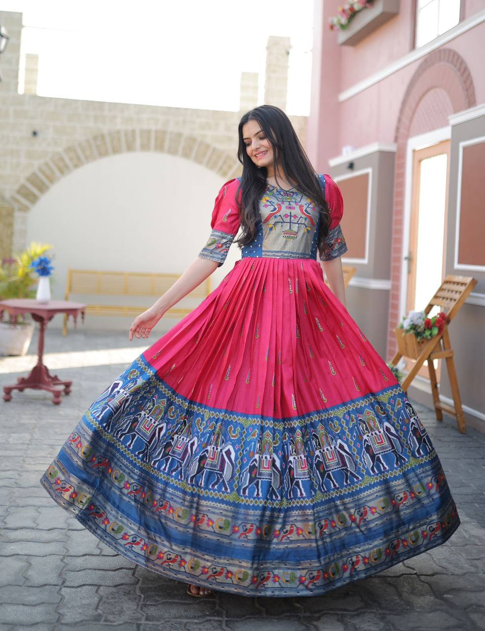 ๐*Be the center of attention with this Dola silk designer gown. The Patola Foil print work appears chic and great for any occasions.*๐ฅฐ