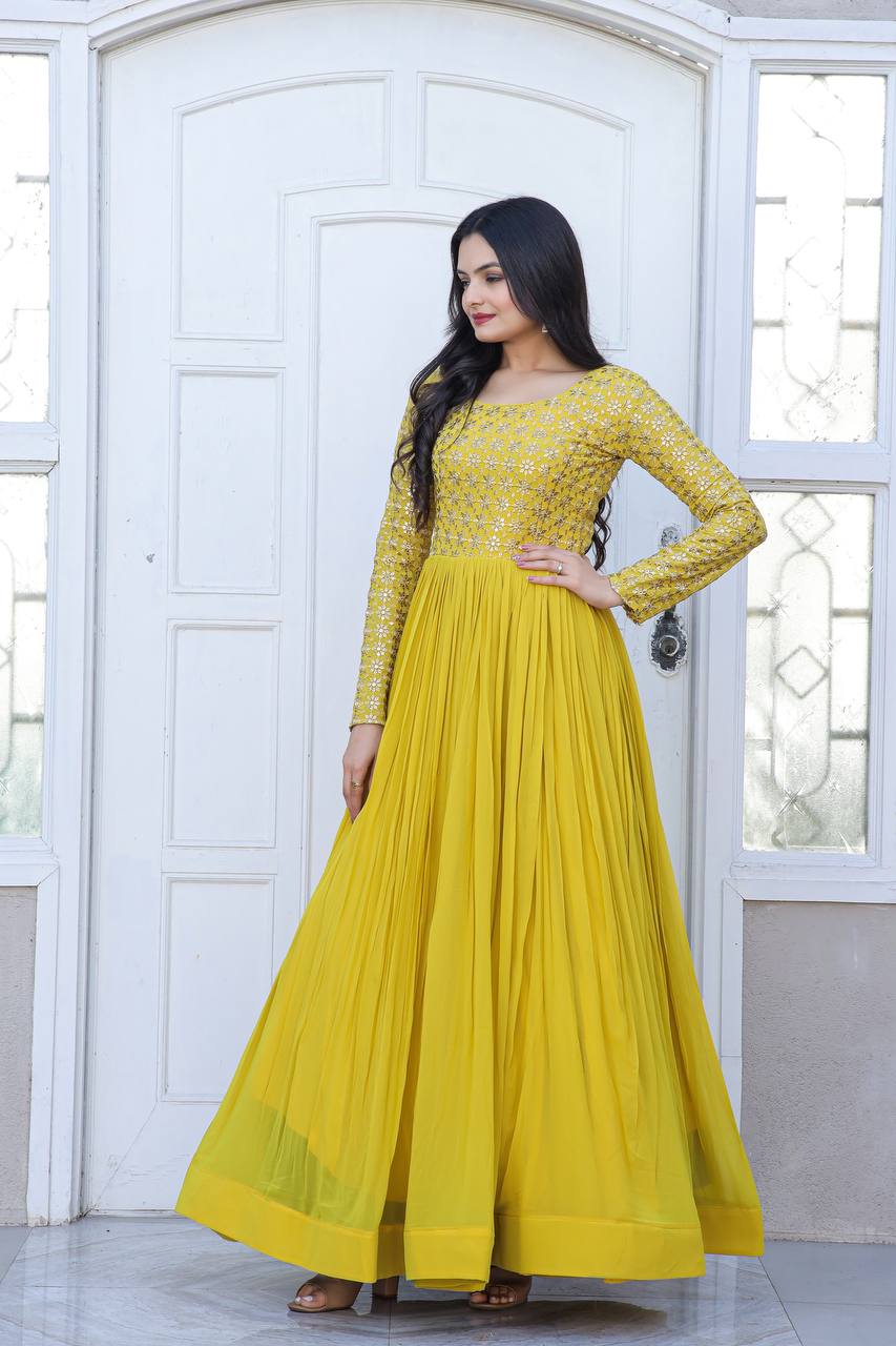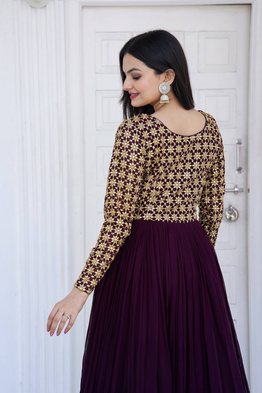 π *Faux Blooming gown with Sequins-Multi Embroidered Work, It looks graceful for women, it Designed to flatter all body types, gowns for women combine the best parts of western and Indian wear into one stunning ensemble.* π