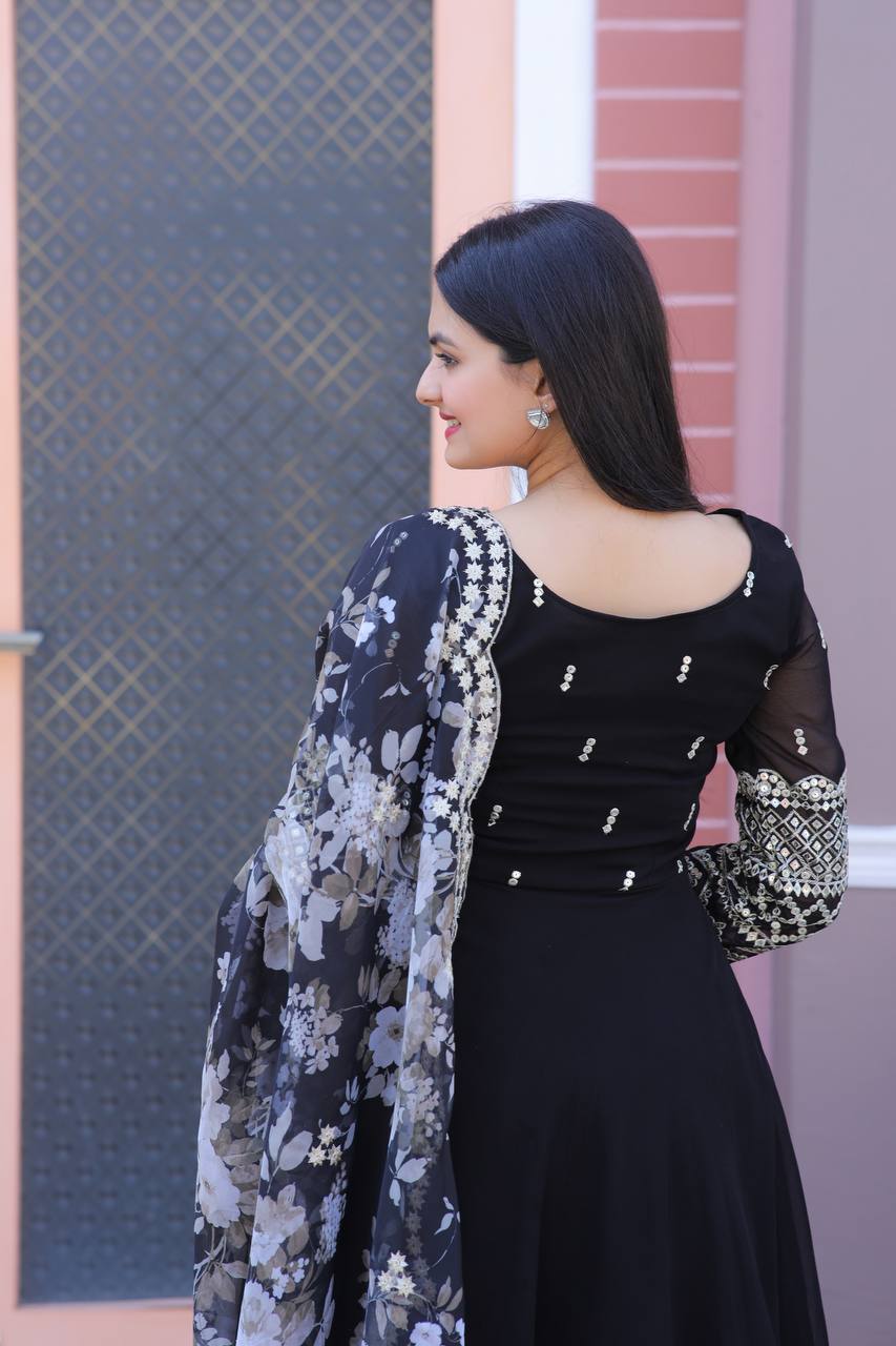 ππ» *Fabrics & Work:-* Soft organza with floral Rich Print and Sequins Embroidery cutwork
