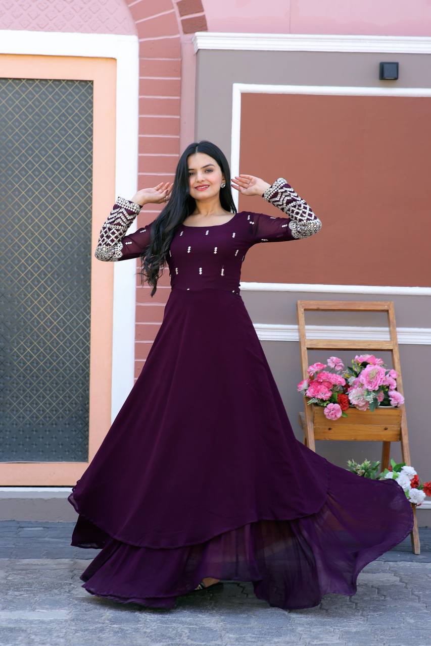π *Faux Blooming gown with Sequins-Multi Embroidered Work, It looks graceful for women, it Designed to flatter all body types, gowns for women combine the best parts of western and Indian wear into one stunning ensemble.* π