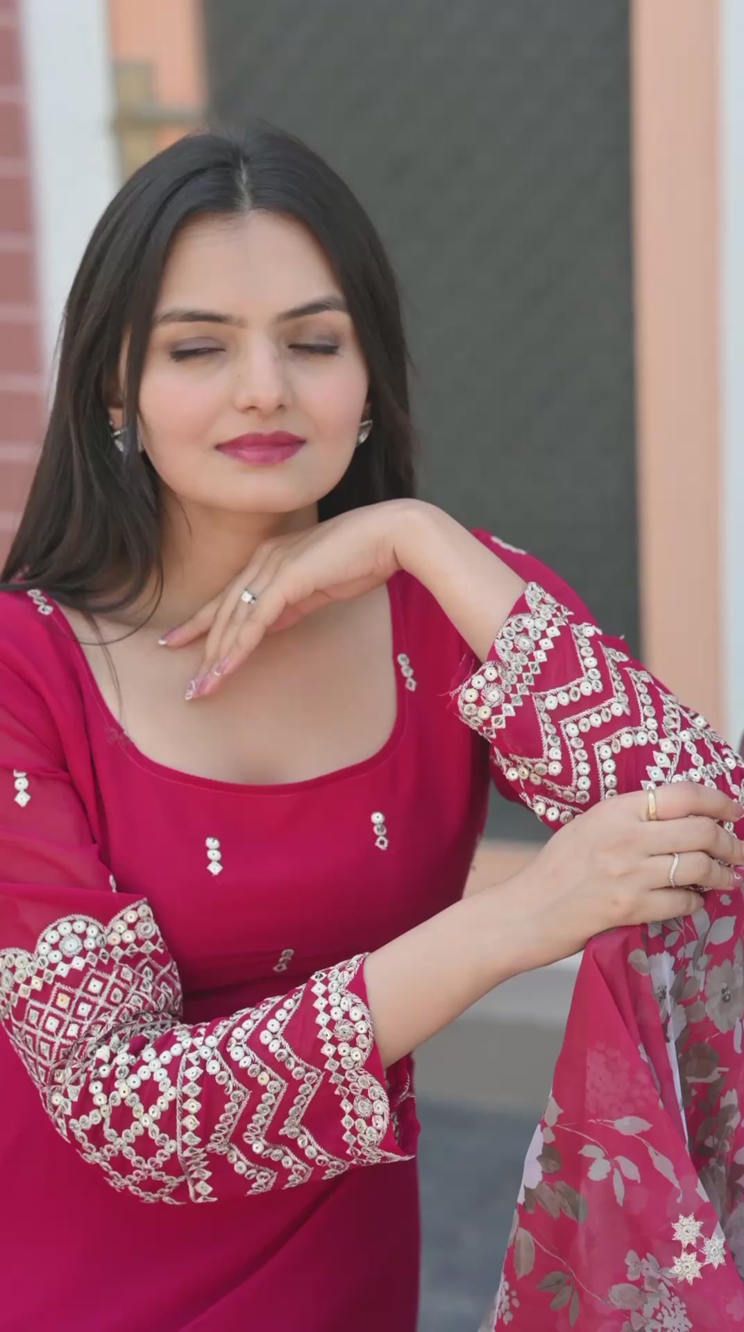 ππ» *FABRIC & WORK :-* Faux Blooming With Sequins-Multi & Zari Embroidered Work