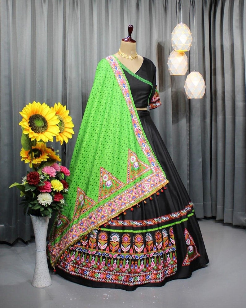 LEHENGA FABRICS: SOFT CHINNON SILK WITH DIGITAL PRINT WITH REAL MIRROR*