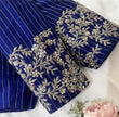 Here is a beautiful Hand embroidered zardosi work saree blouse in beautiful royal blue color that has V neck design front and back with intricate heavy zardosi hand embroidery details with stripes background as shown!! Runs with any self or contrast color saree ! Please message us for any color / size customization !!