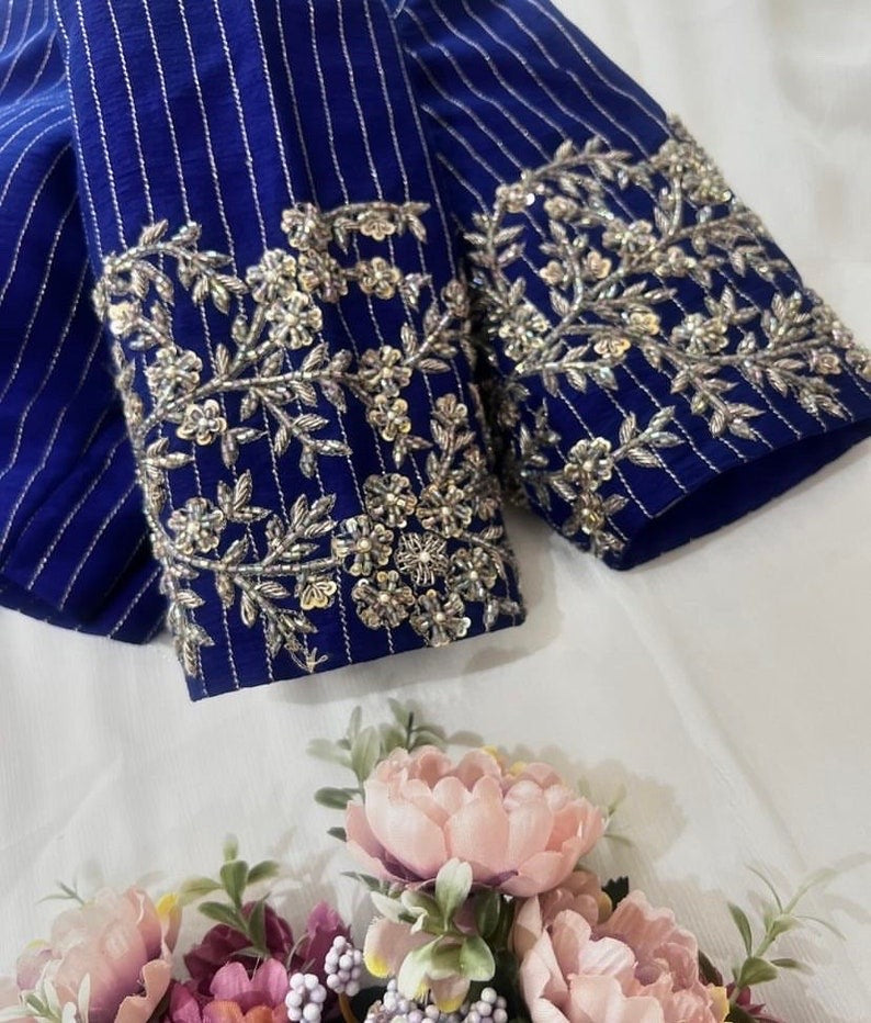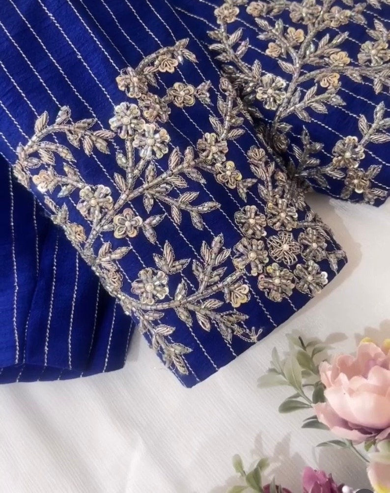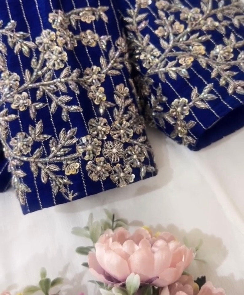 Hand embroidered ready made saree blouse / crop top/stitched saree blouse usa / royal blue saree blouse/modern blouse/zardosi blouse/red saree blouse/ blue bridal pure silk blouse/ blue heavy maggam work blouse