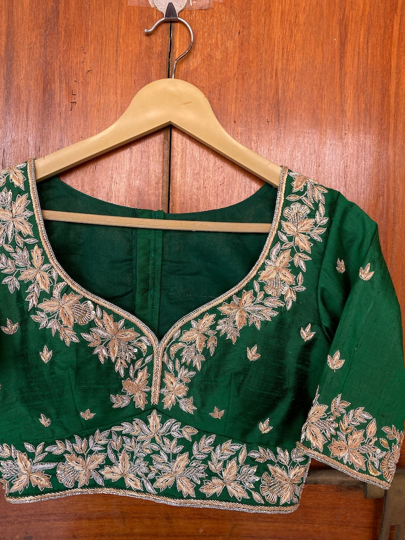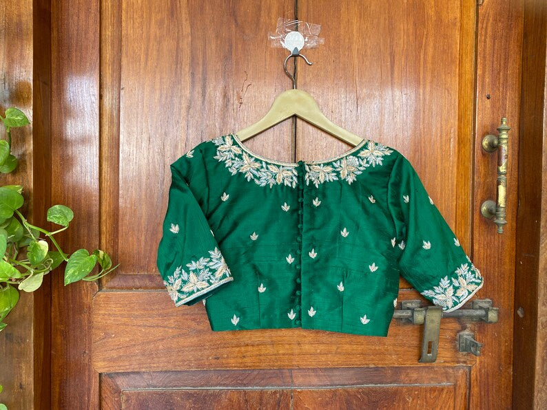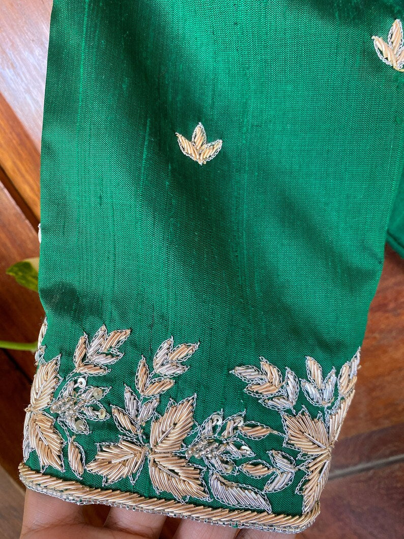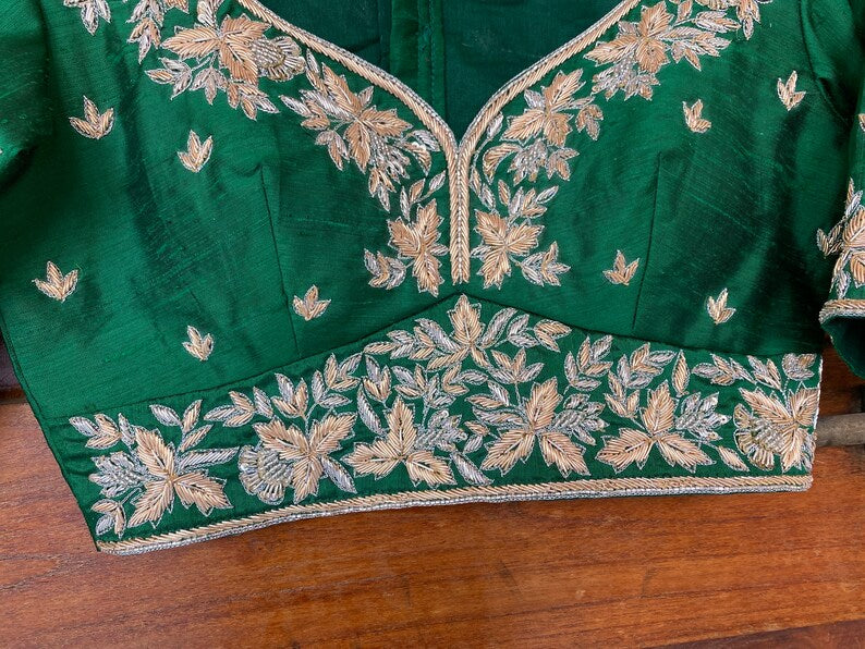 Pure Silk Green Hand Embroidery Blouse