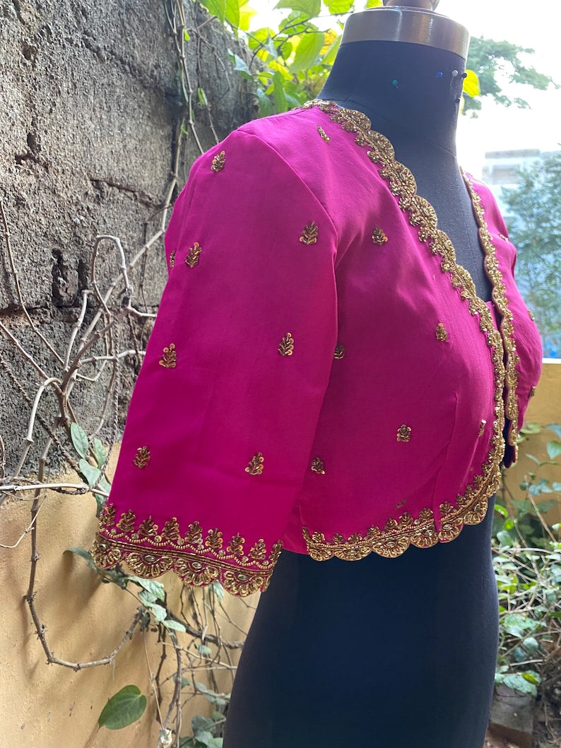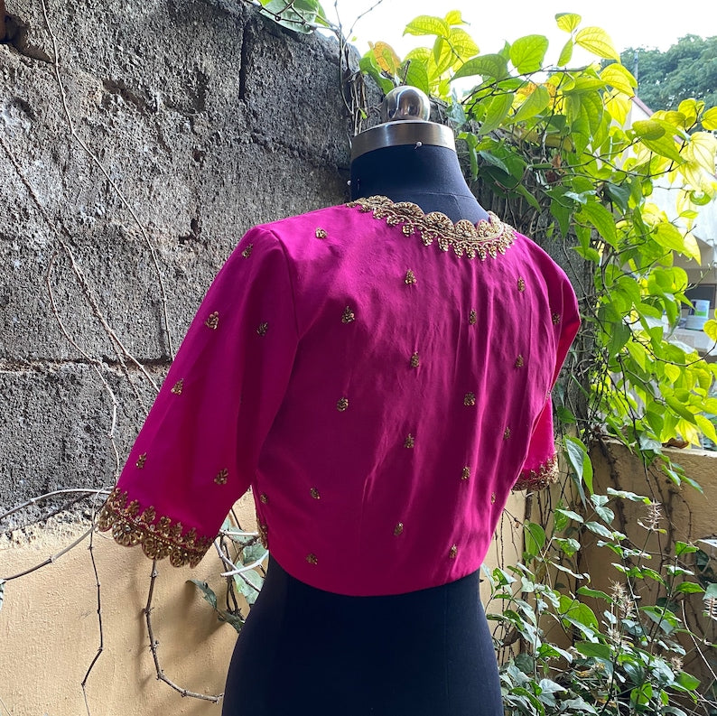 Pure Silk Pink Hand Embroidery Blouse
