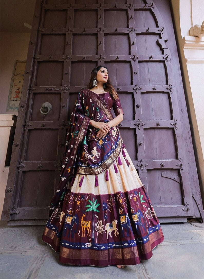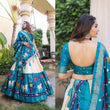 Lehengha Choli for Womens and Girls Dola Silk Fabric with Patola Print and Foil Work Speciel Traditional Events Blue