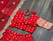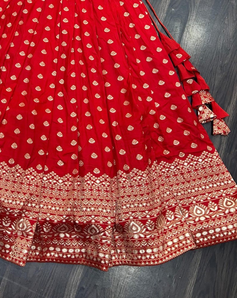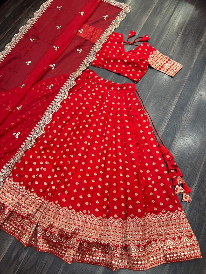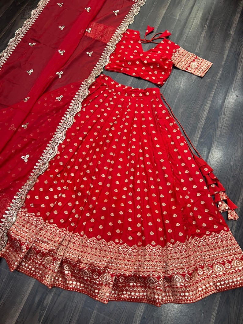 Reception Wear Jacquard with Embroidered Work Wine Lehenga Choli