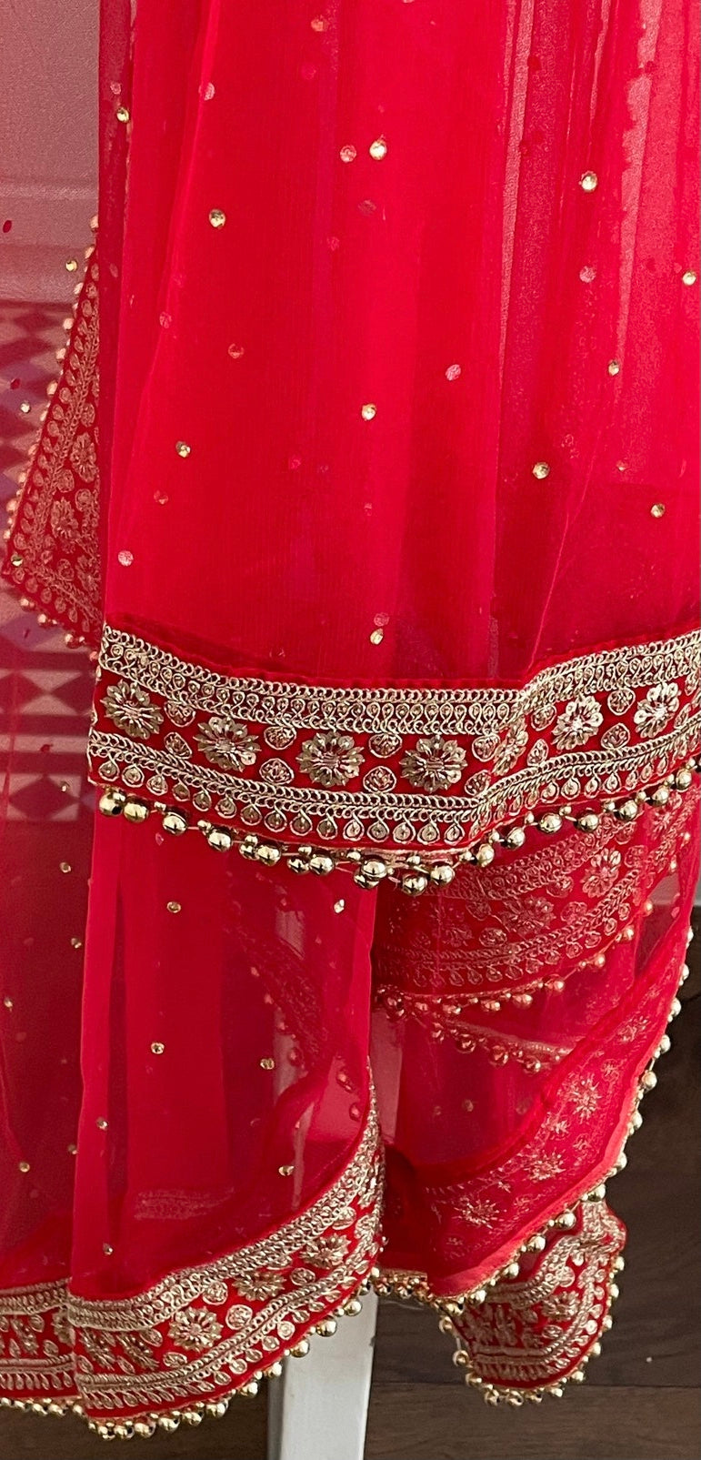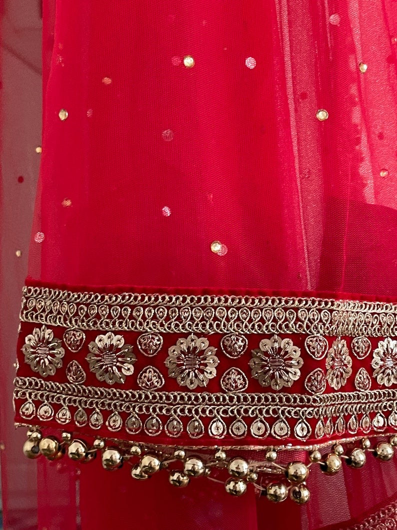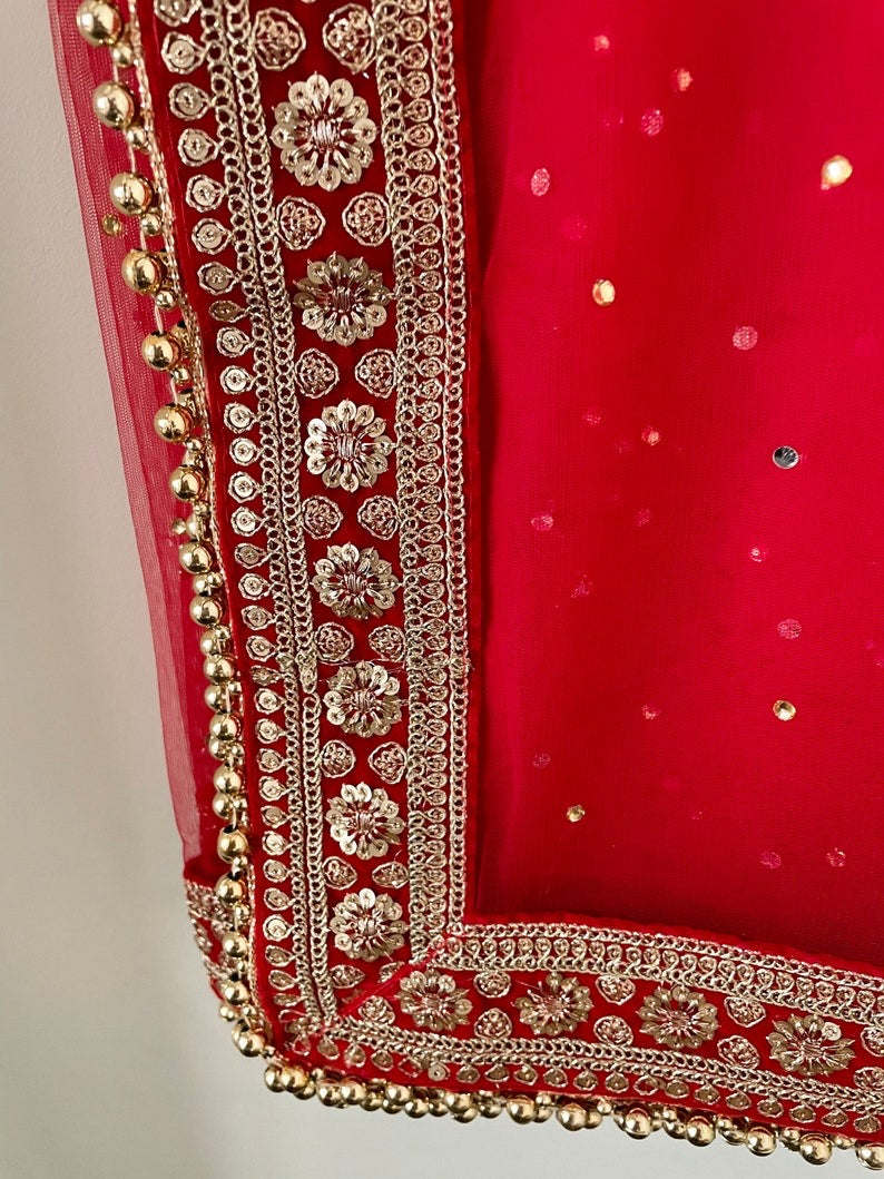 Red Bridal Net Duppatta Chunni Second Double Duppatta for your Wedding Outfit Lehenga. Chunni Ceremony Sagan Weddings Scarf Nikaah Mehendi Mayoon Dholki