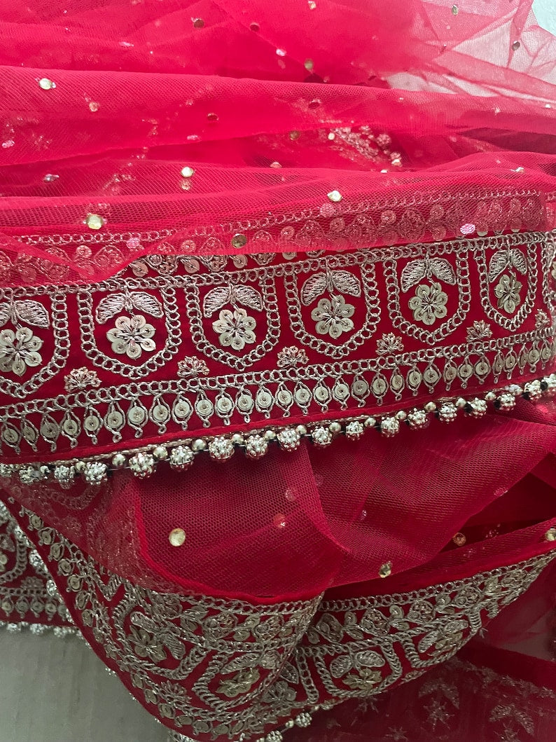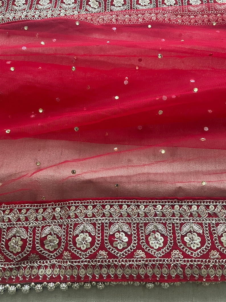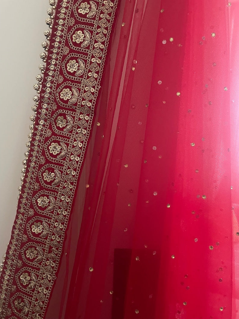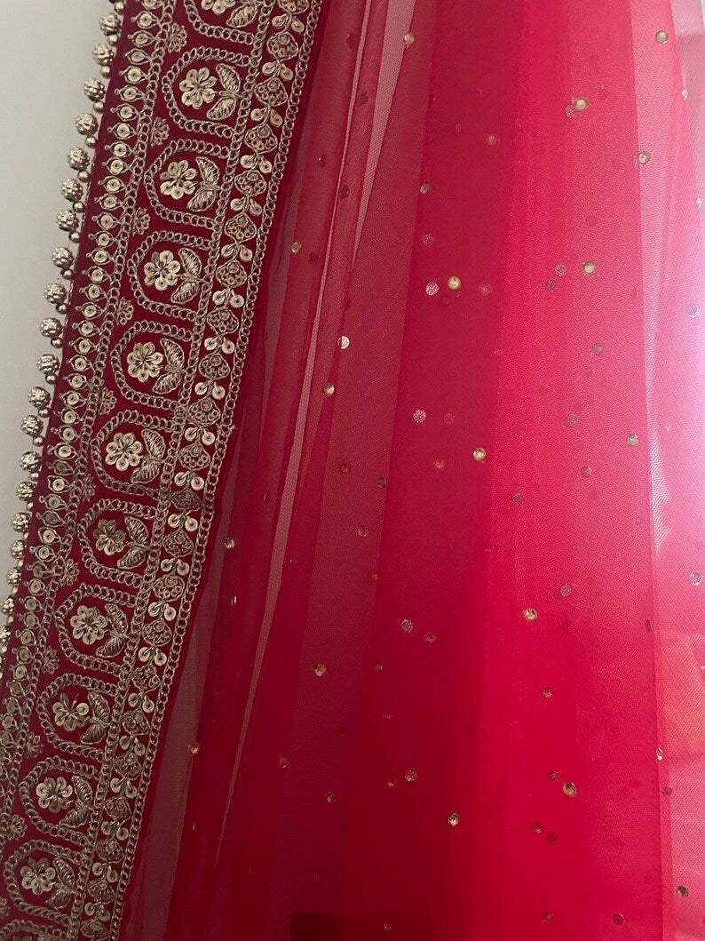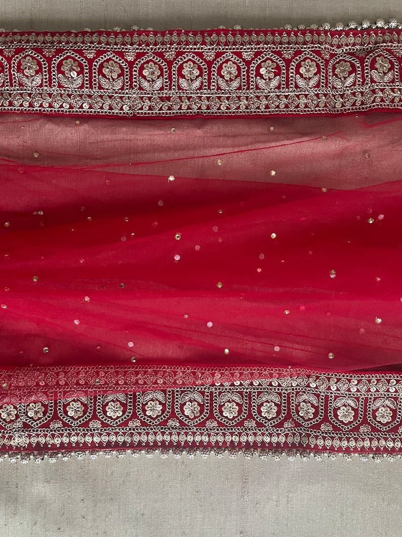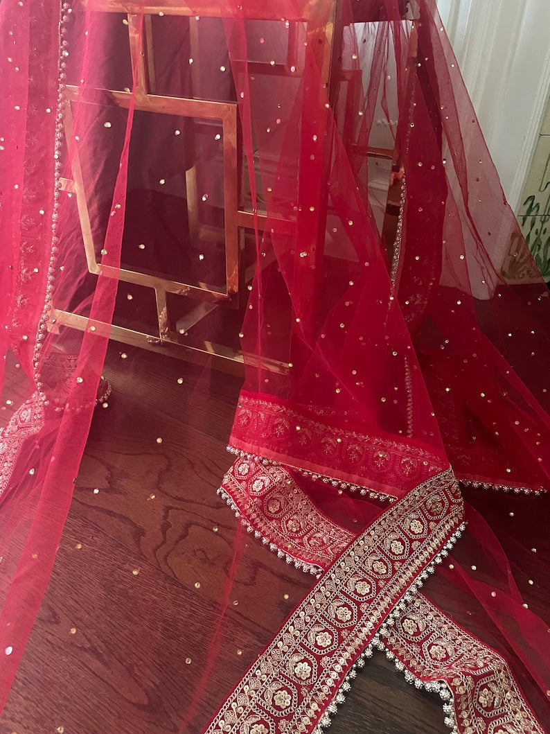 Red Bridal Net Duppatta Chunni Second Double Duppatta for your Wedding Outfit Lehenga. Chunni Ceremony Sagan Weddings Scarf Nikaah Mehendi Mayoon Dholki
