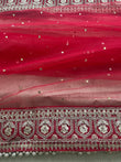 2.5 inch border on all four sides finished with golden beads trim, chinta work with gold rhinestone all over the Duppatta