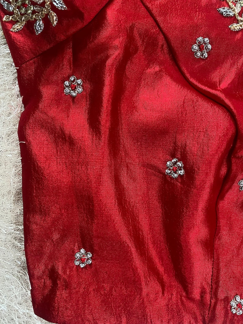 Closure : back pot neck with hooks and Doris with all over buti embroidered