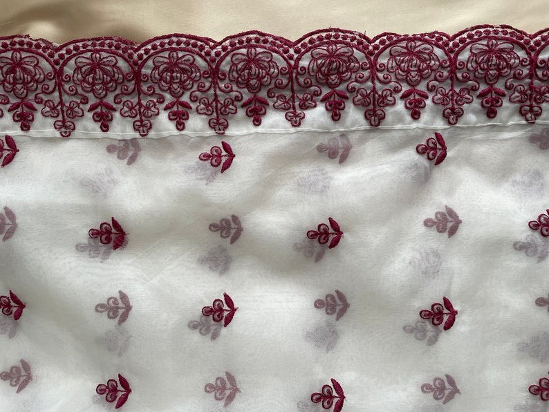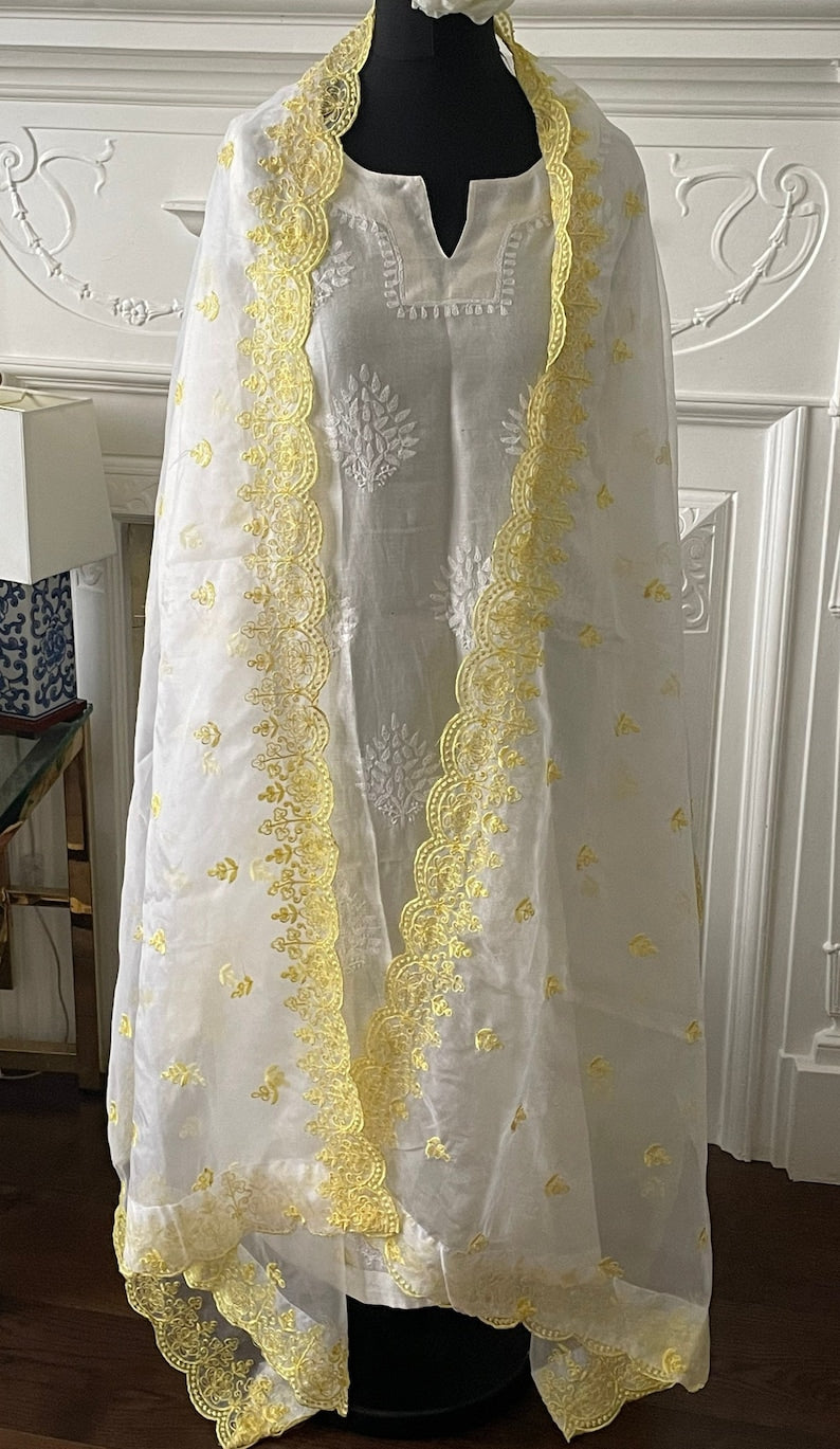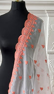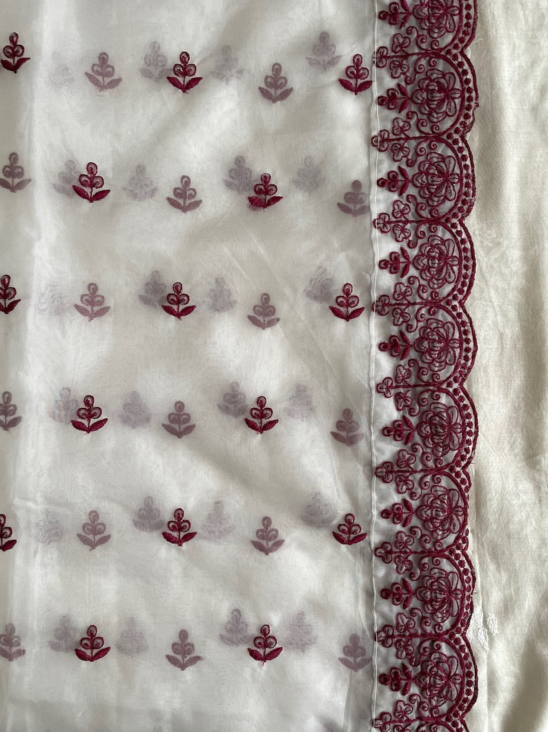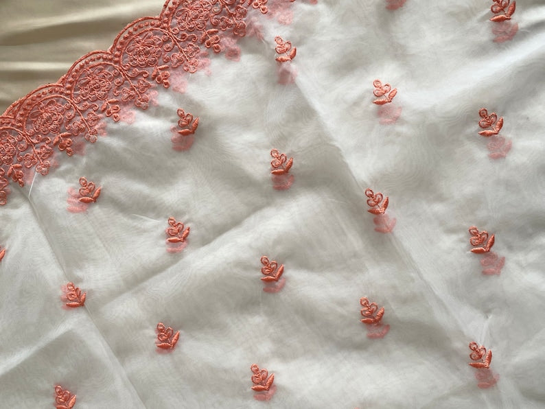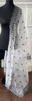 Organza fabric Duppattas thread embroidery, edges finished with scallop finishing.