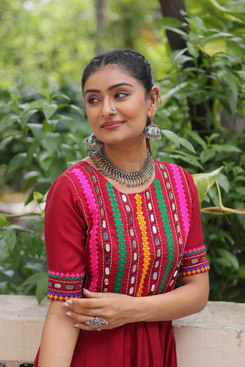 ๐๐ป FABRICS & WORK :- Roman With multicolor Thread and Mirror Work