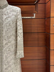 - Elegance Redefined: Step into elegance with our White Embroidered Sherwani, a masterpiece designed for the groom on his wedding day.
