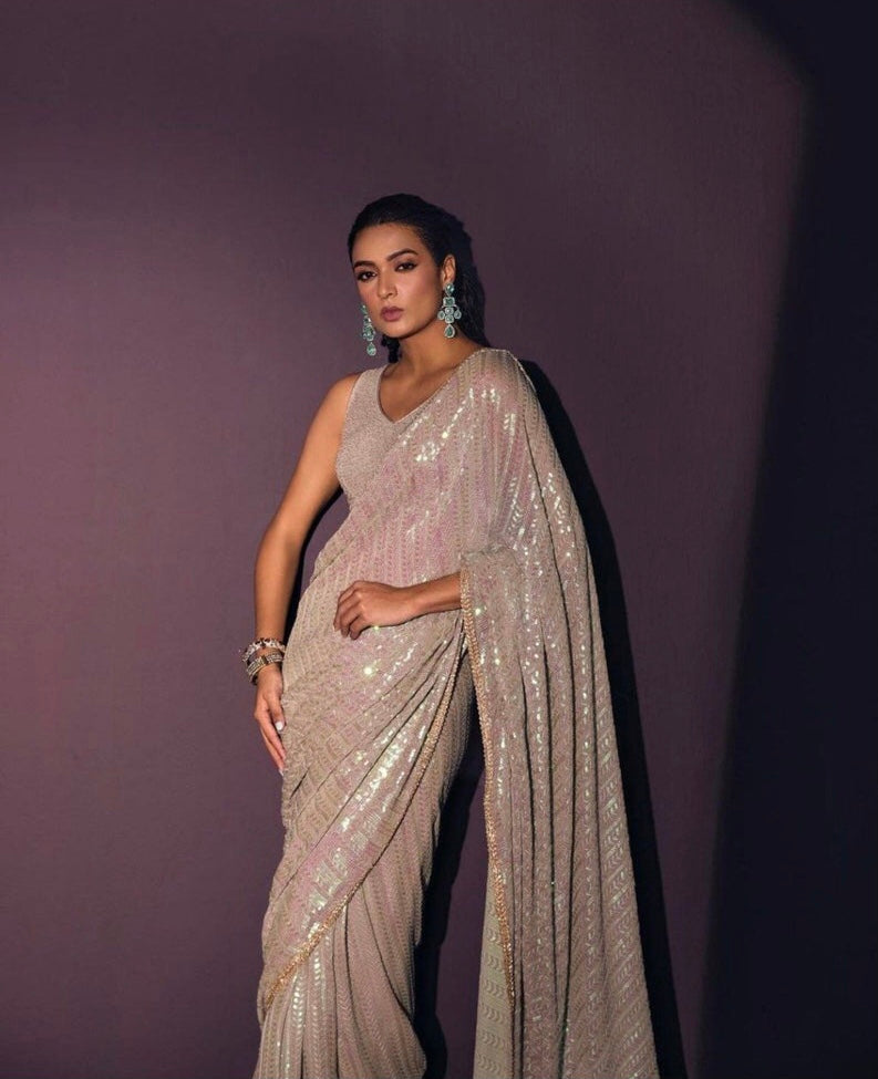 • Saree Work- Heavy 3MM Double Run ALL OVER Sequins Embroidery Work.