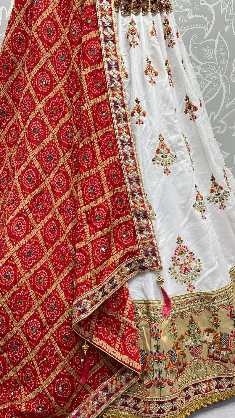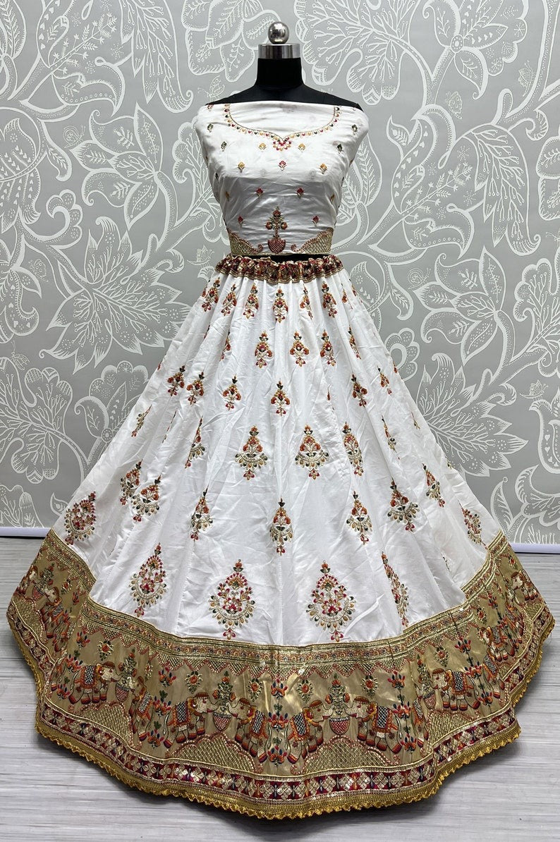 Self Design Semi Stitched Lehenga Choli (White Colour)