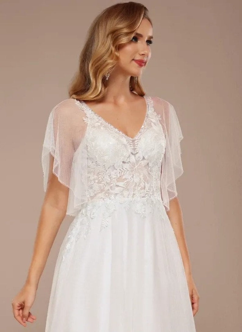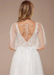 Shaped and V-neck floor-length tulle lace wedding dress with frill sequins