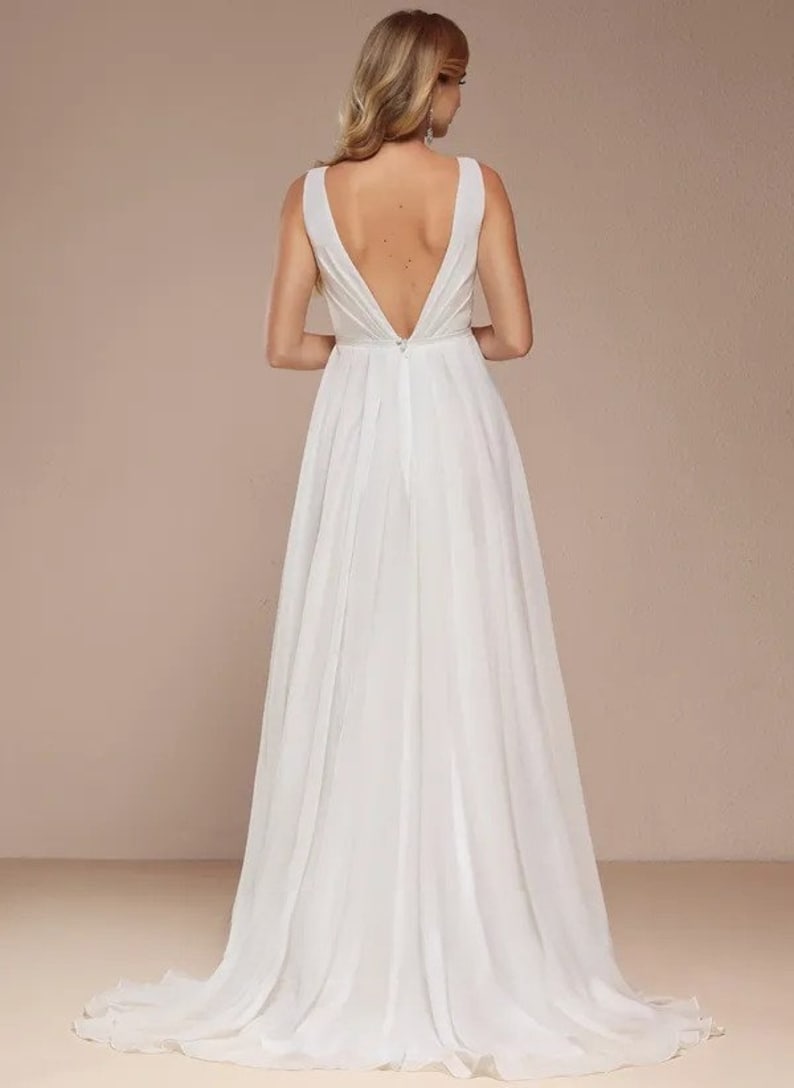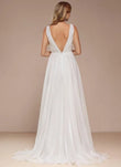 Shaped and V-Neck Long Train Chiffon Wedding Dress with Bow