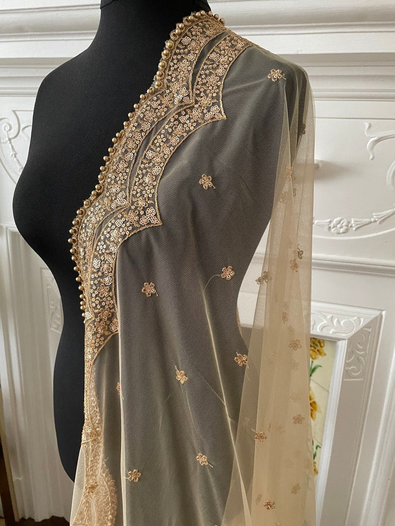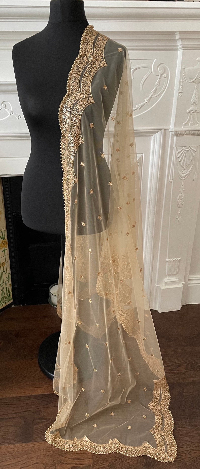 Name : Shre Angel (Mirror) Grey Color with Three Layer Mirror on border Net Dupatta