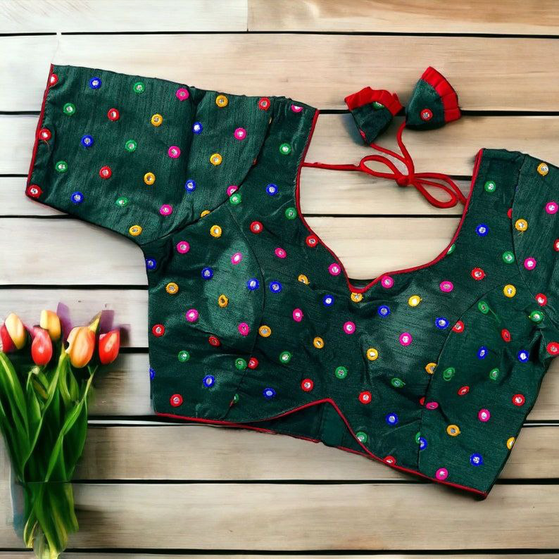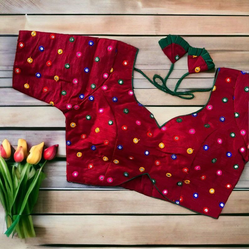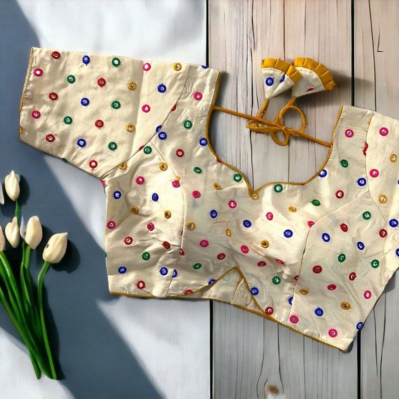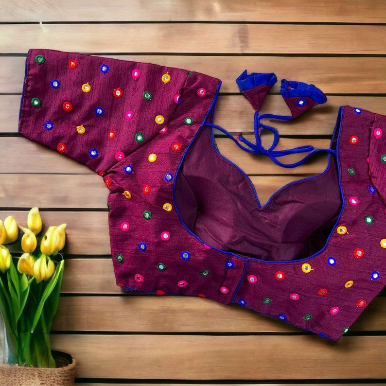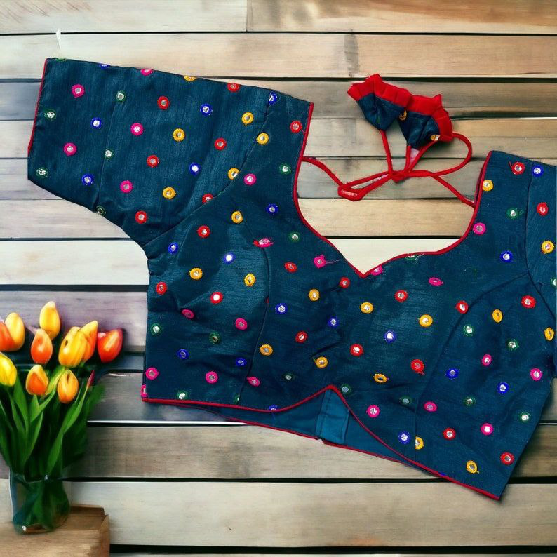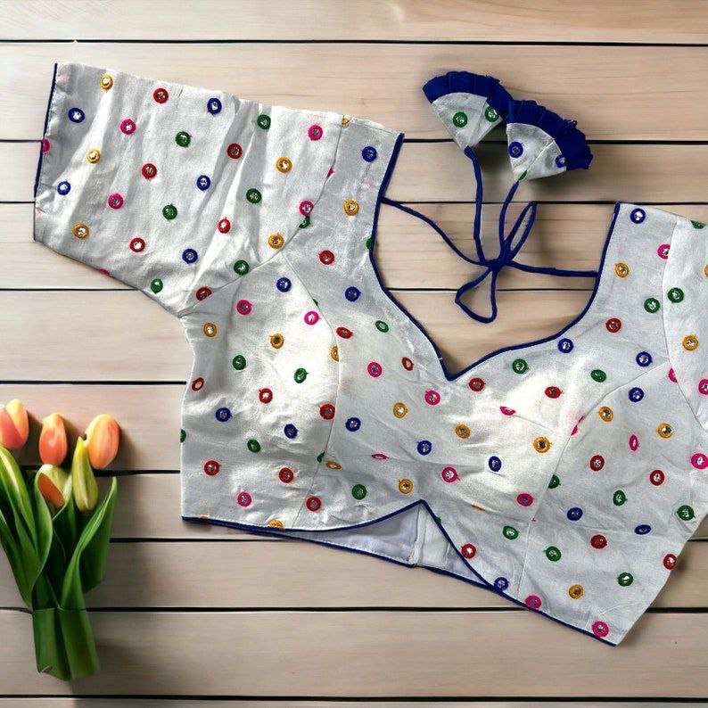 Multy Foil Mirror Heavy Embroidery Work Blouse