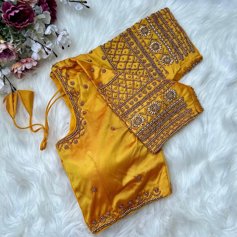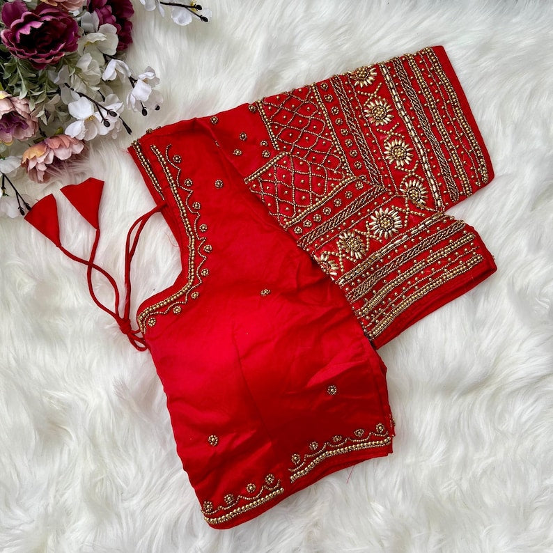 Blouse in nice finished Khatali work( Manggam Work) with coding and Jari work