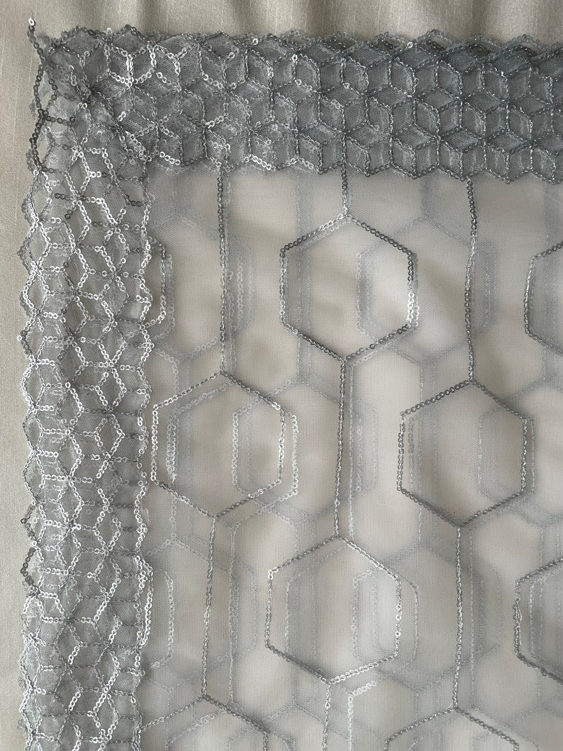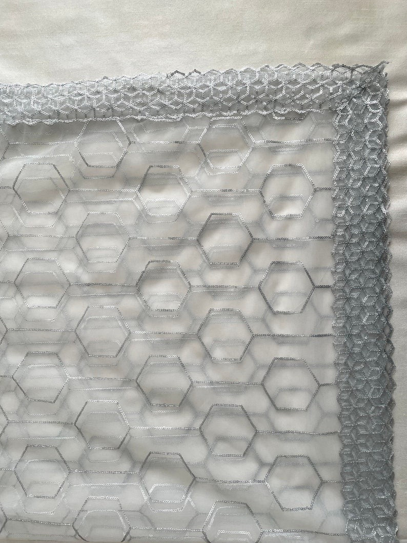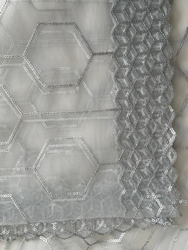 Silver Sequins White Greyish Net Dupattas Border Scarf Chunni