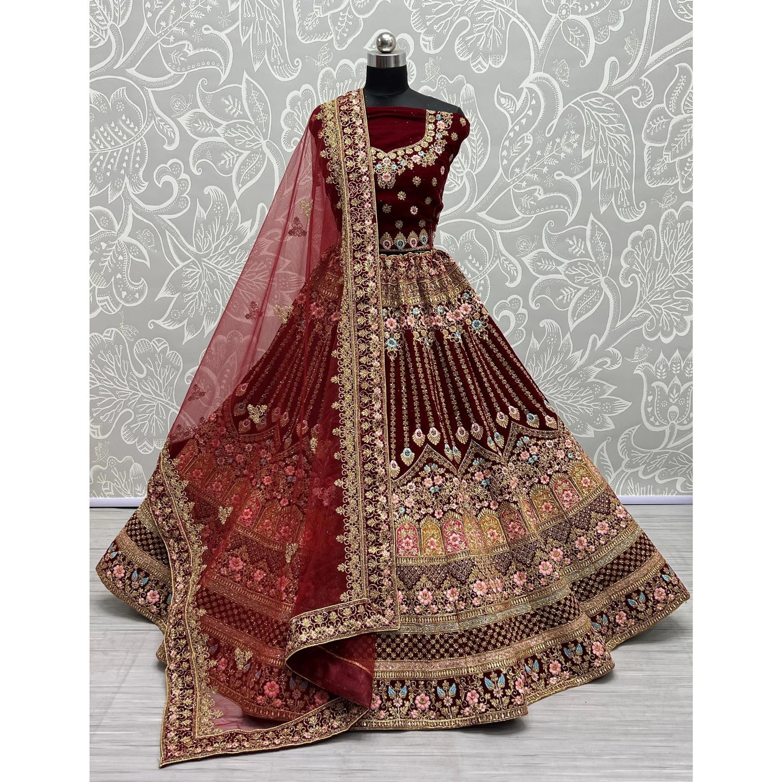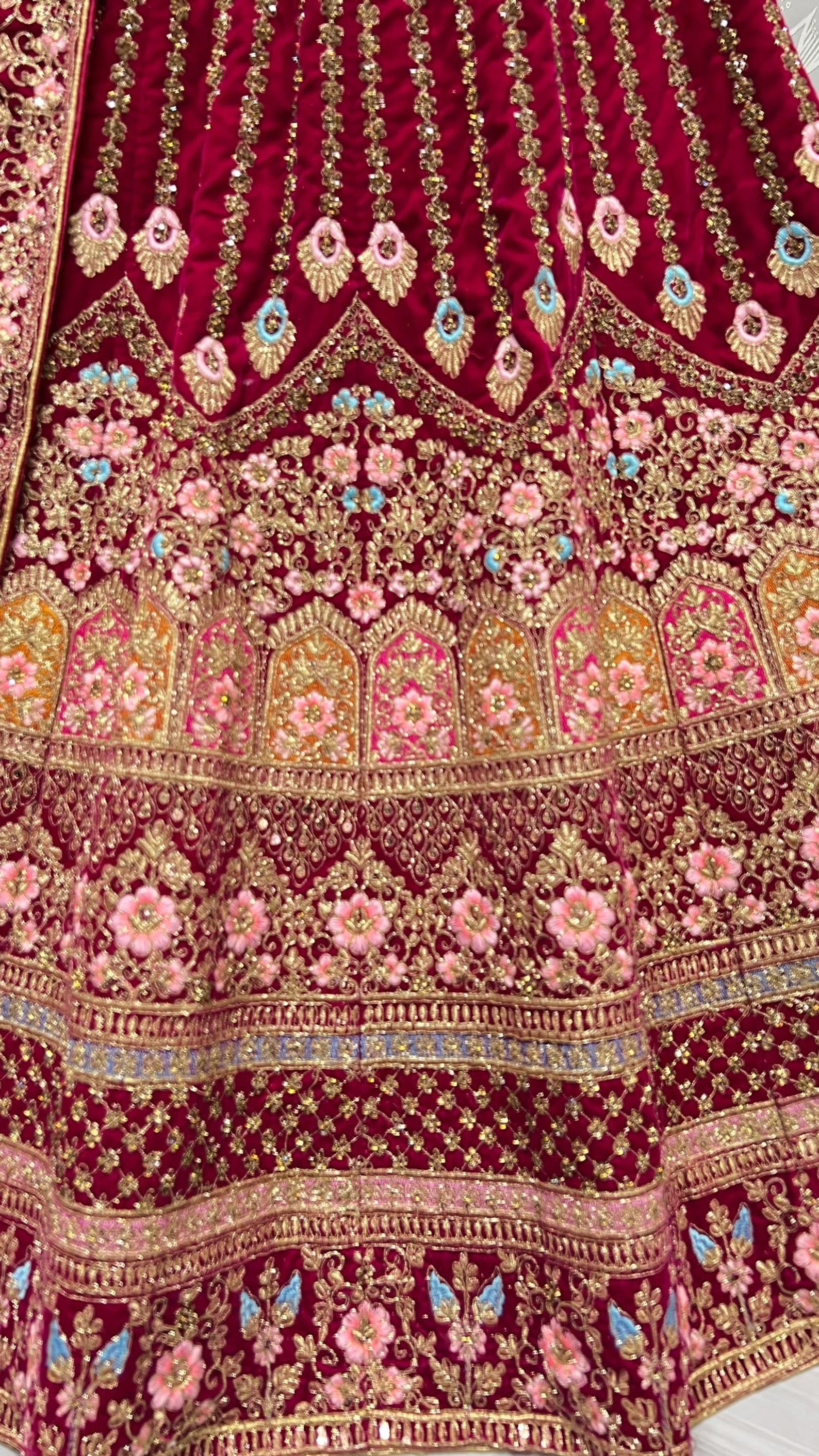 Sober Work Semi Bridal Lehenga Choli Partywear Pink and Maroon Gujju Fashion Designer Lehenga Choli