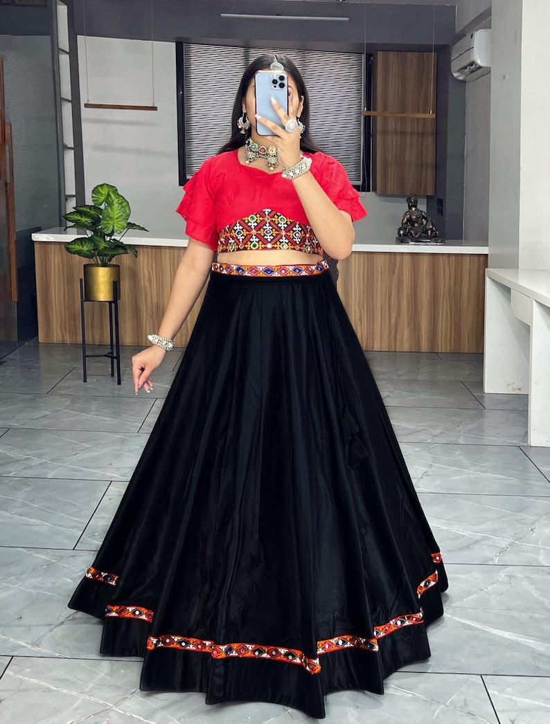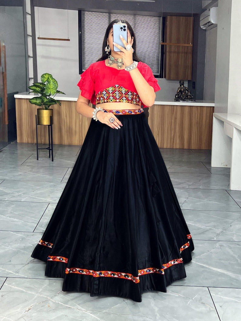 Stunning Black Gamthi Work Cotton Navratri Wear Lehenga Choli