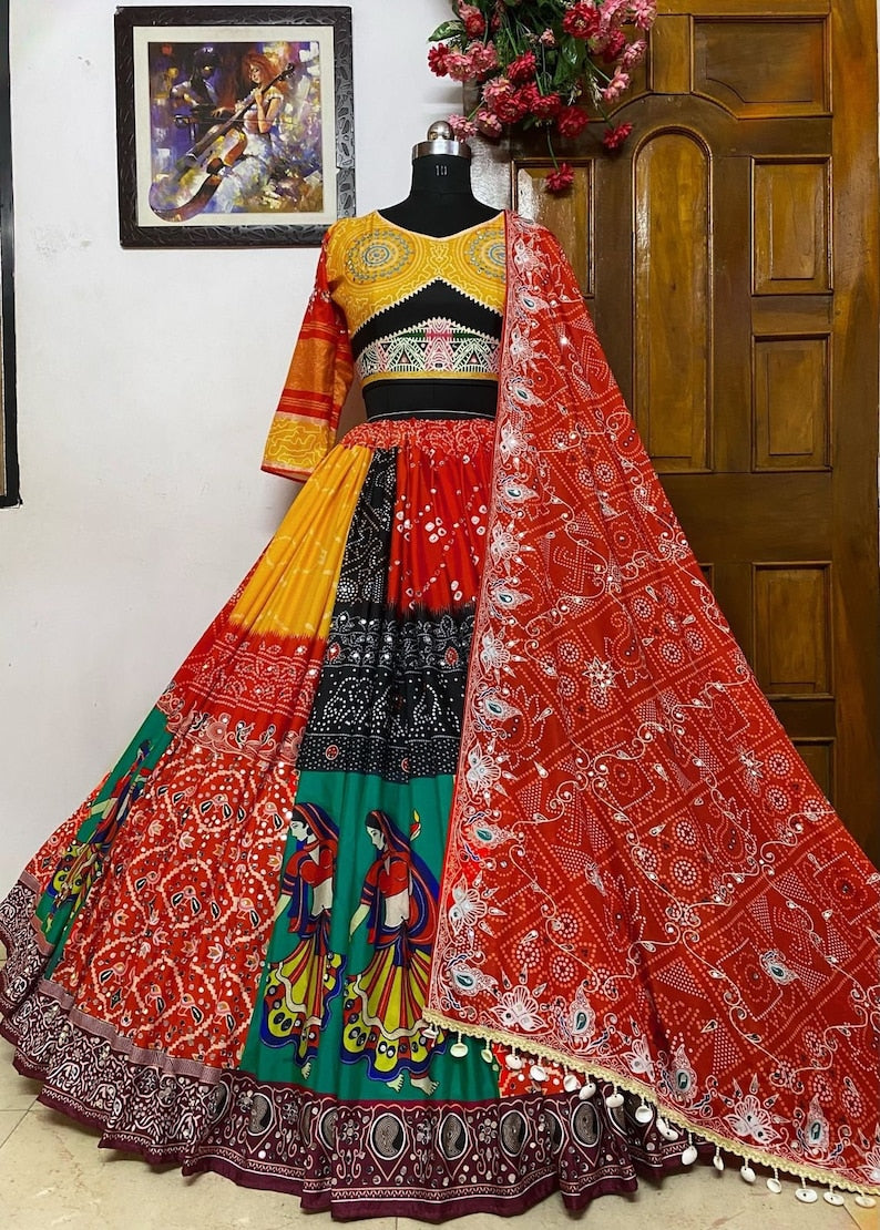 Traditional Designer Digital Print Mirror Work Navratri Lehenga Choli Set