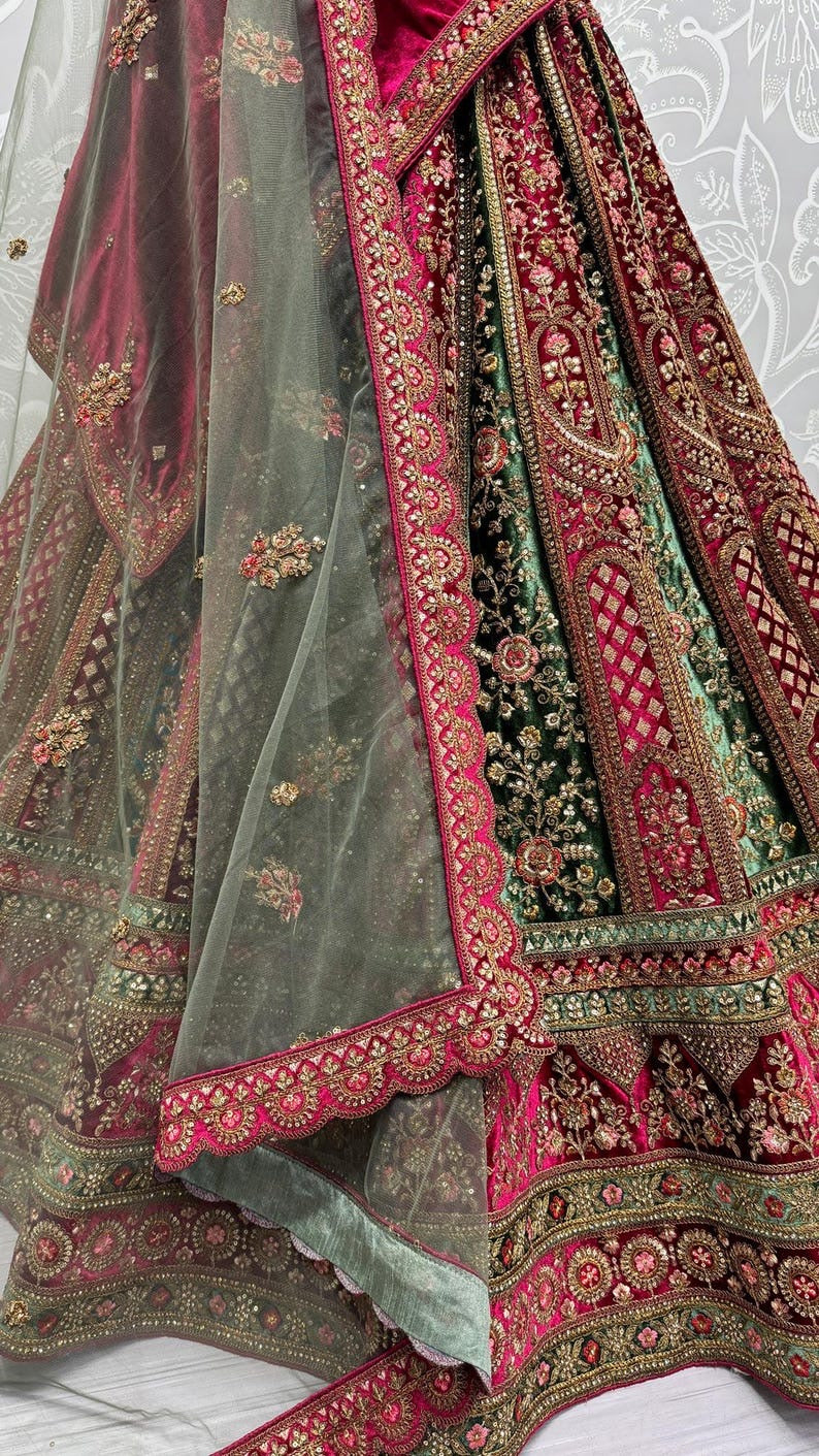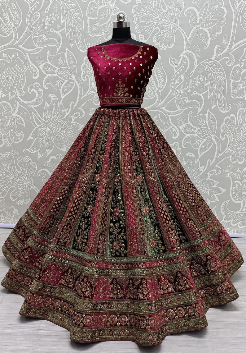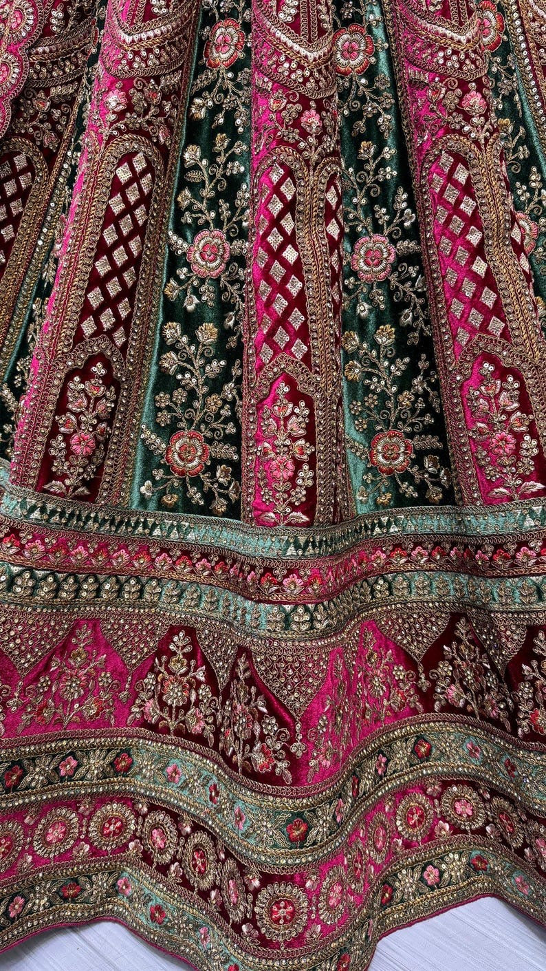 Traditional Wedding Bridal Embroidered Velvet Fabric Lehenga Choli
