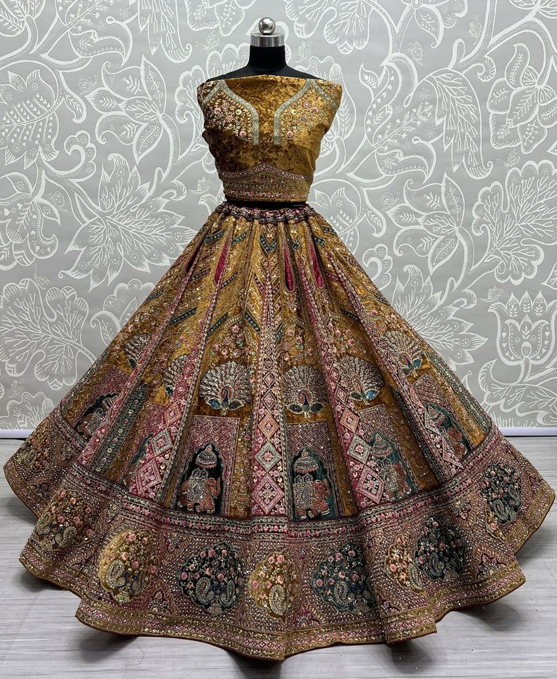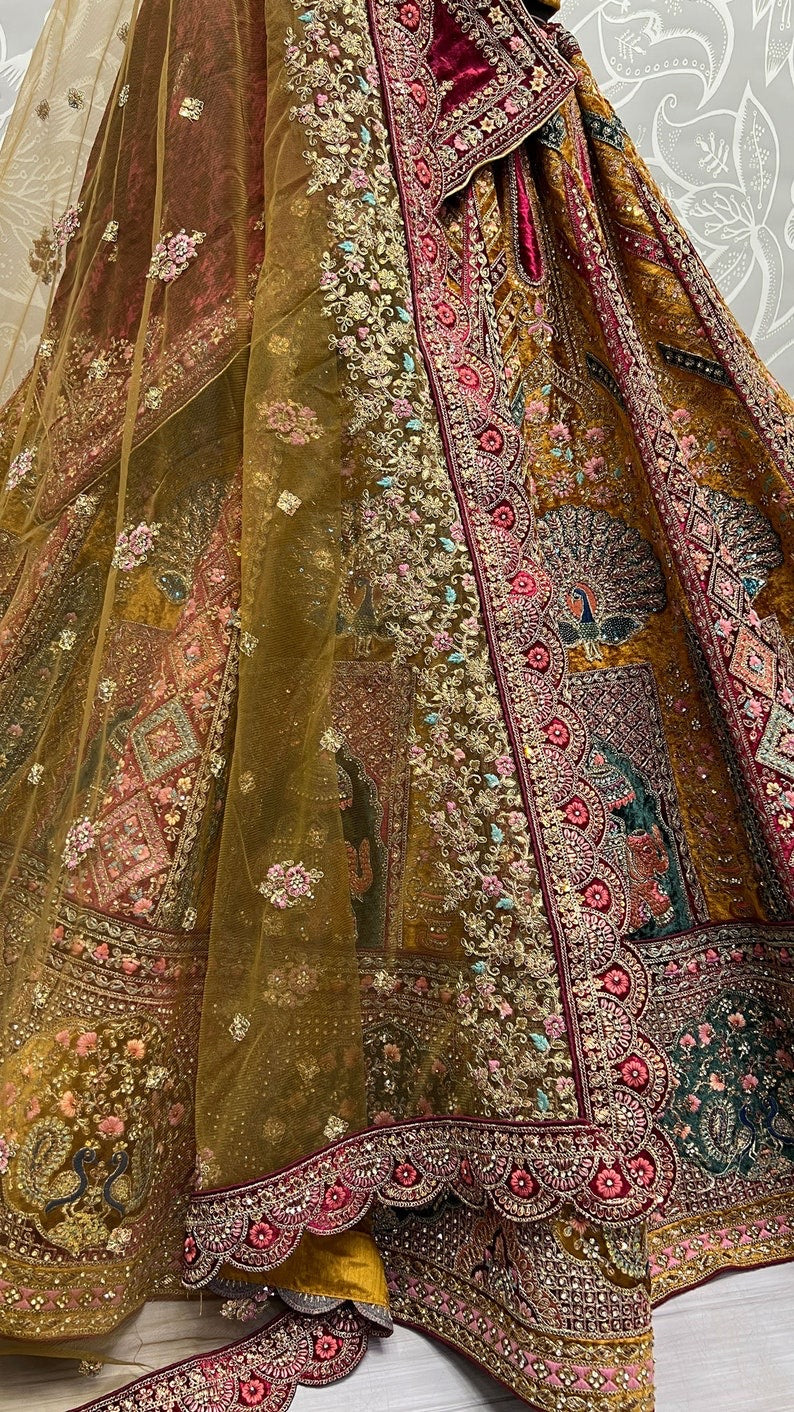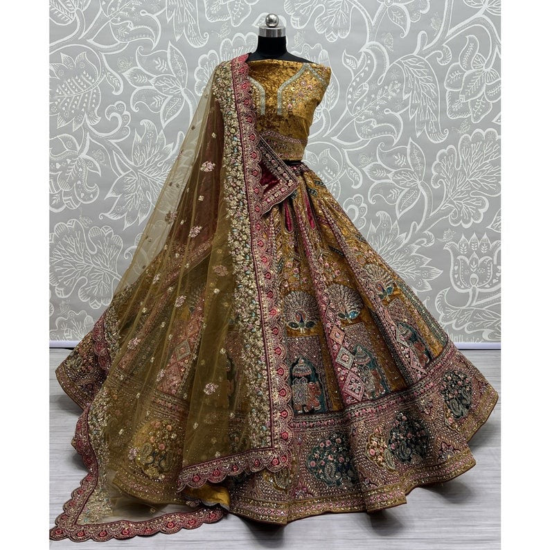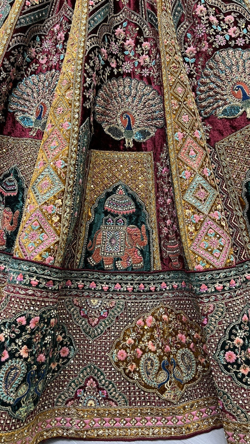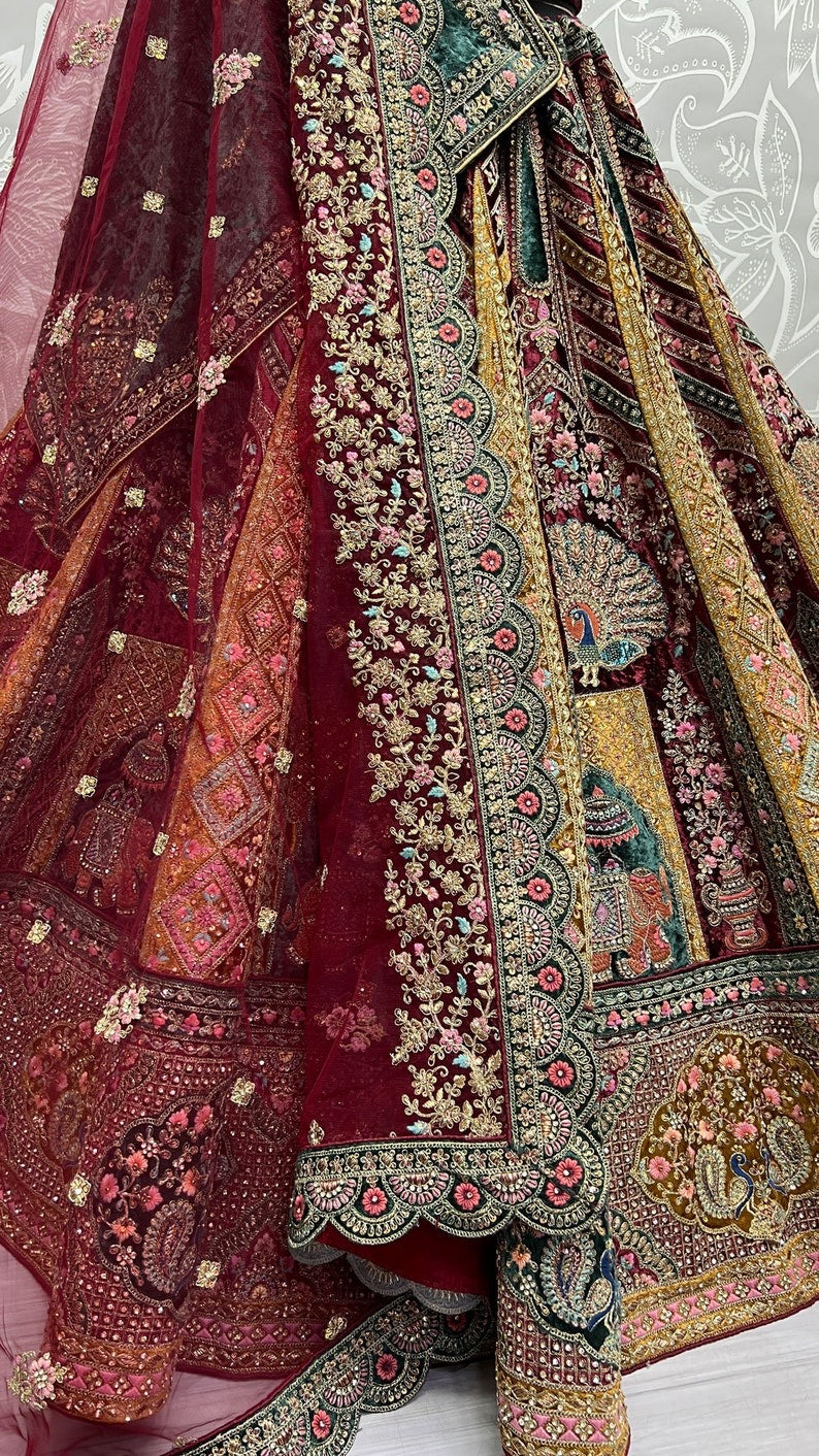 Traditional Wedding Bridal Embroidered Velvet Fabric Lehenga Choli