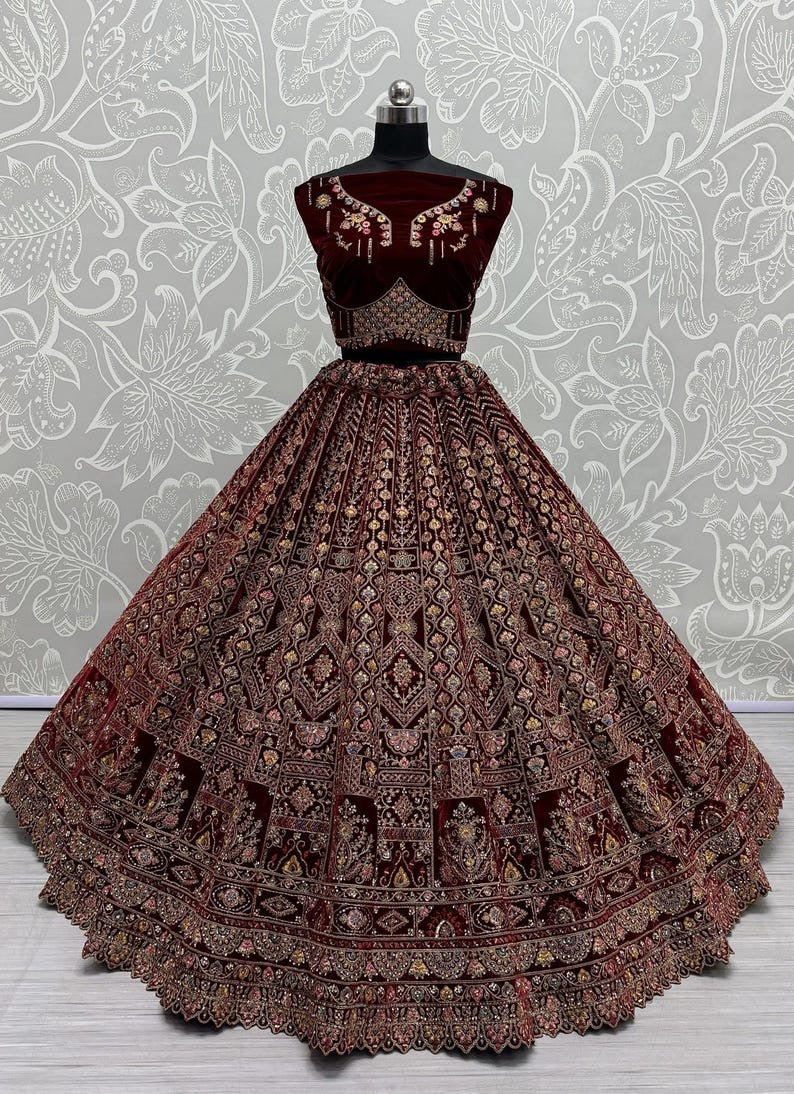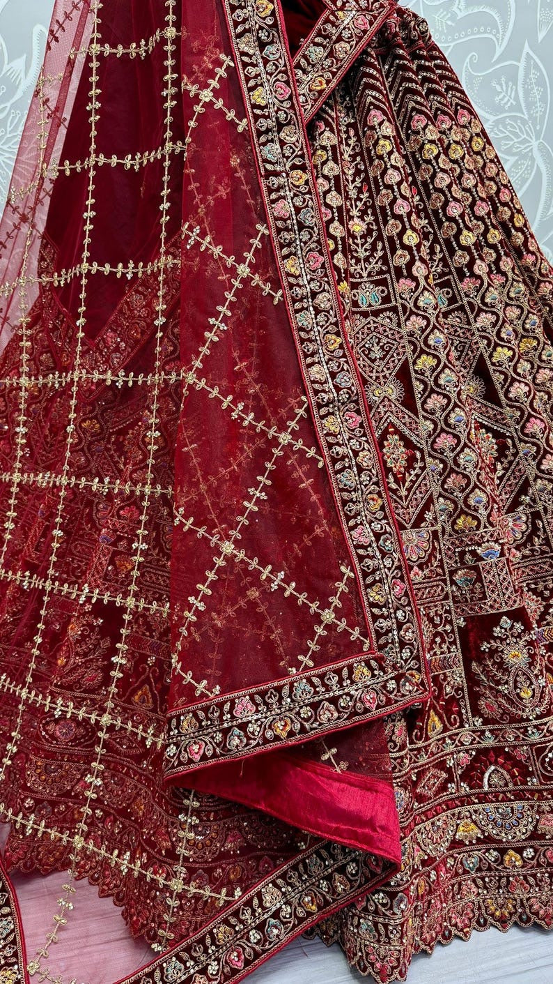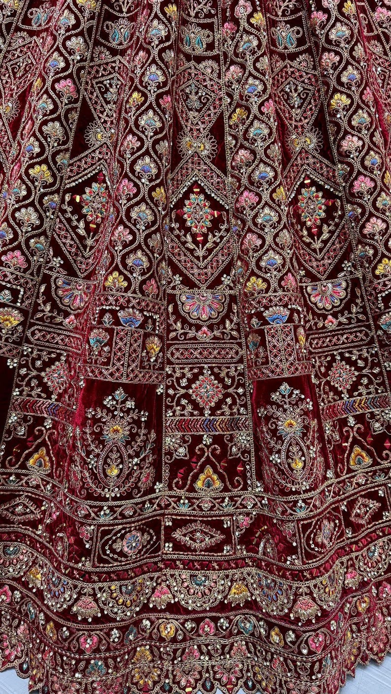Traditional Wedding Bridal Embroidered Velvet Fabric Lehenga Choli