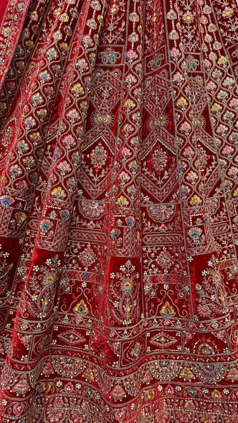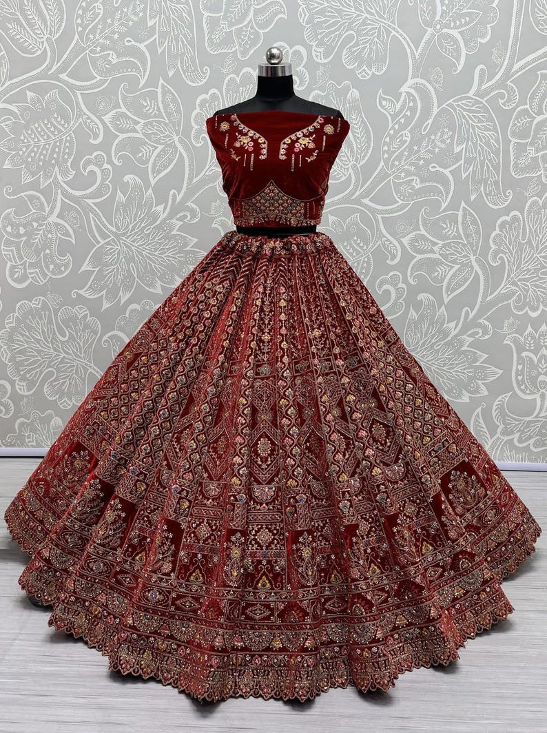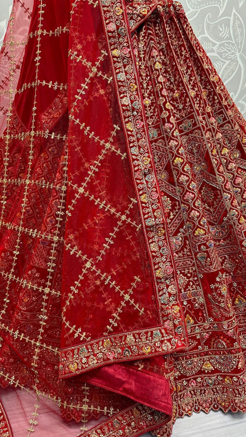 Traditional Wedding Bridal Embroidered Velvet Fabric Lehenga Choli