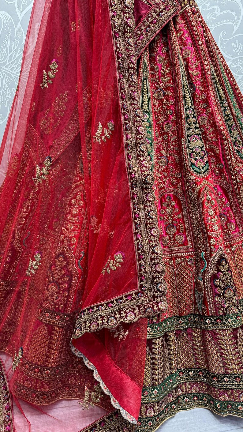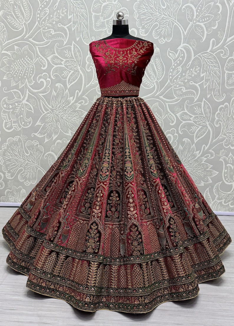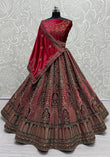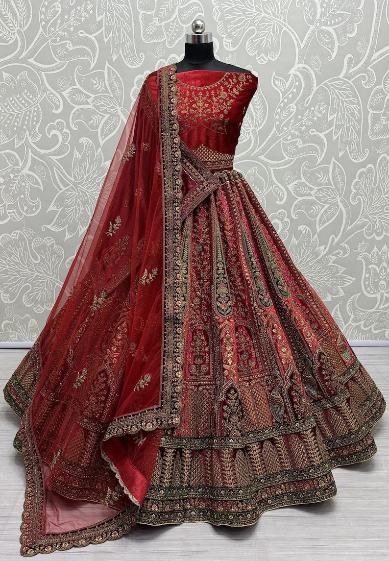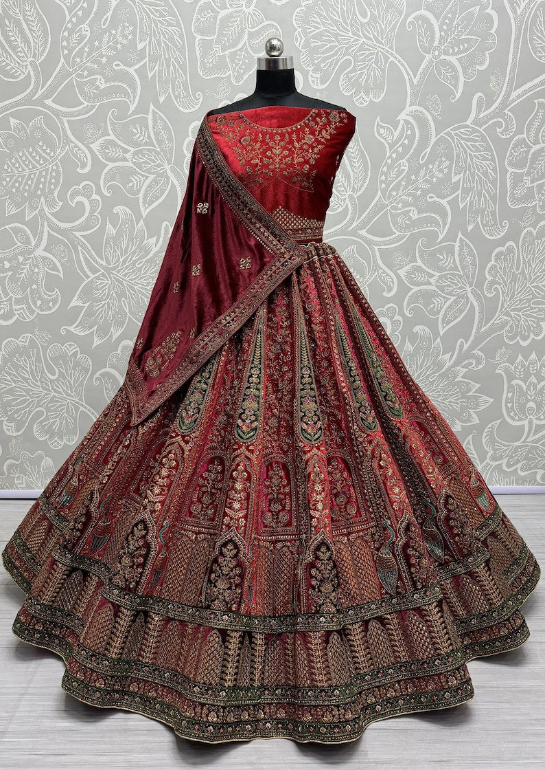 Traditional Wedding Bridal Embroidered Velvet Fabric Lehenga in Maroon Colour