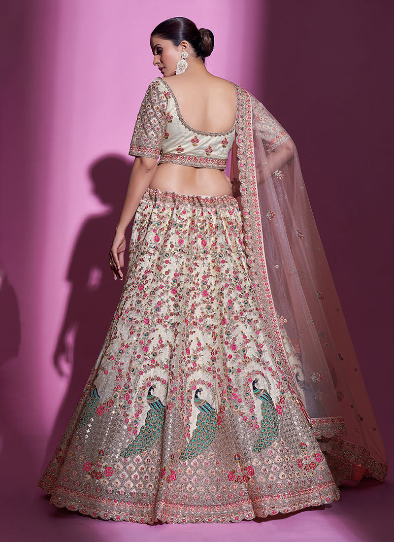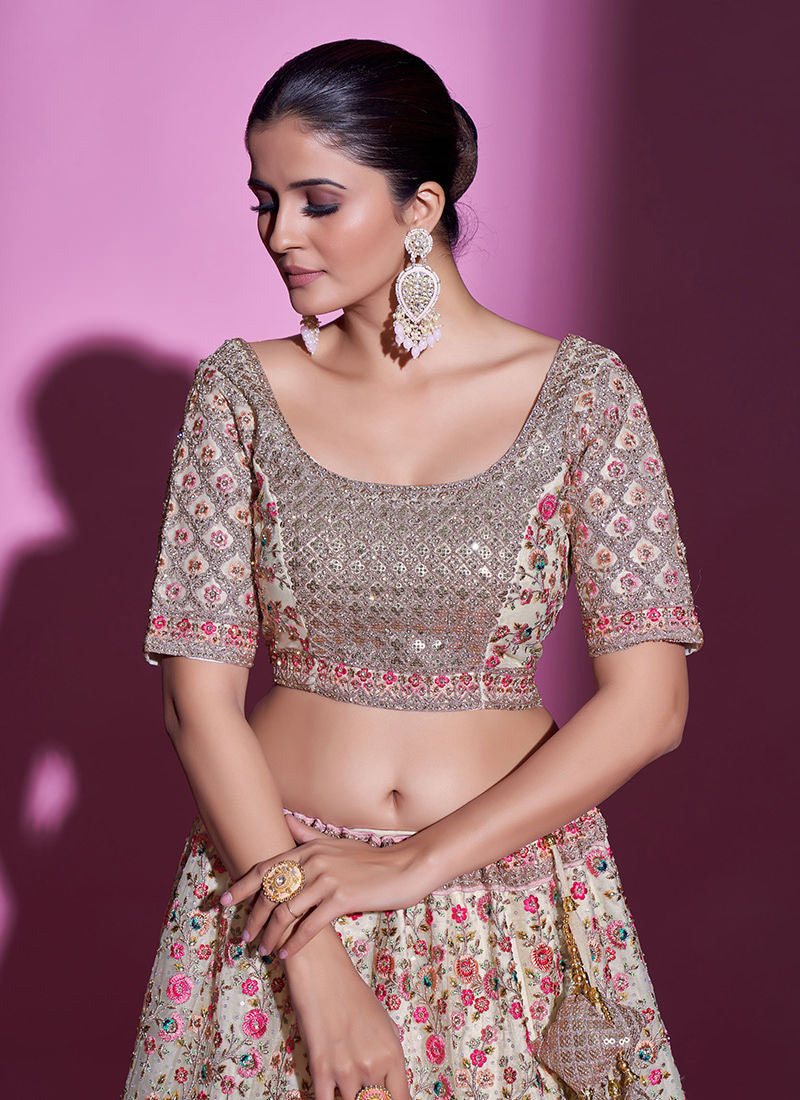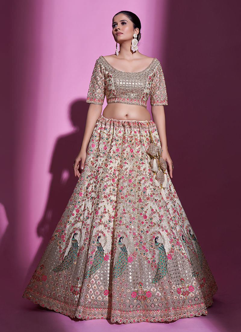 Unimaginable Cream Sequins Embroidered Soft Net Lehenga Choli