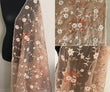 Light Peach Duppatta with White and Golden Zari thread embroidery and block printing