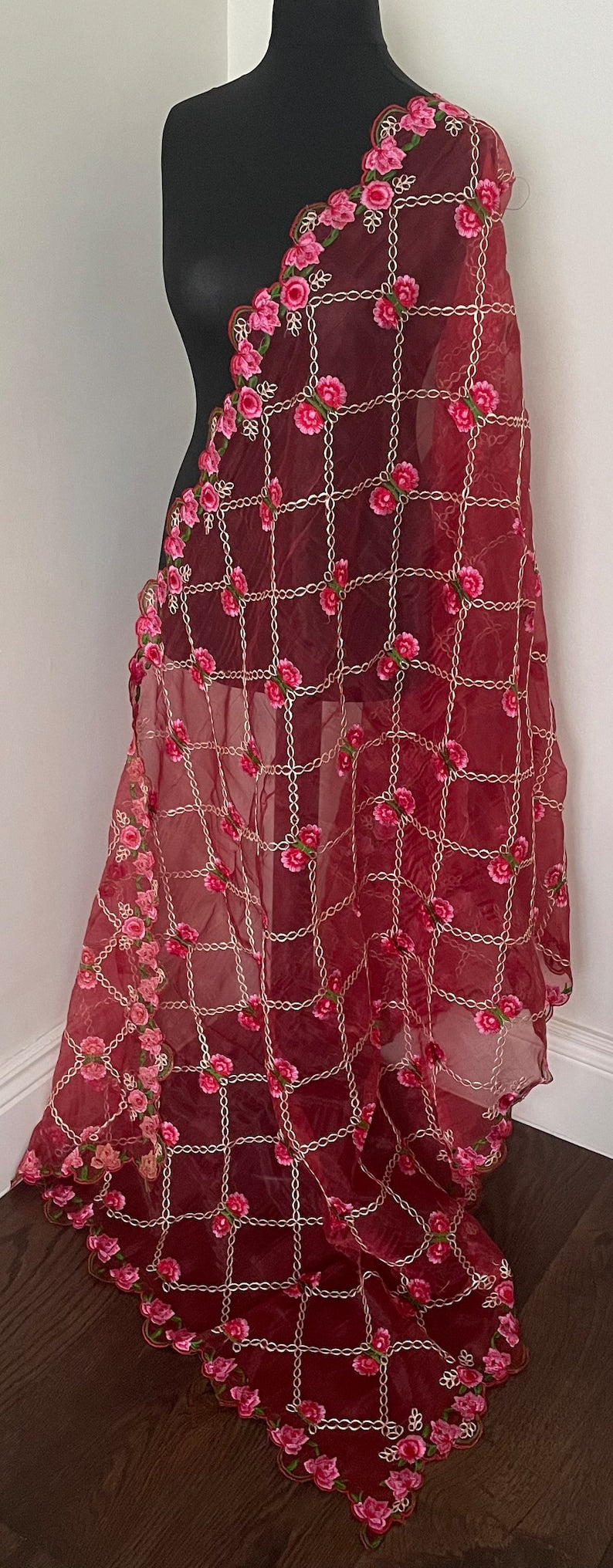 Cherry Duppatta Pink flowers Criss-Cross pattern all over the Duppatta